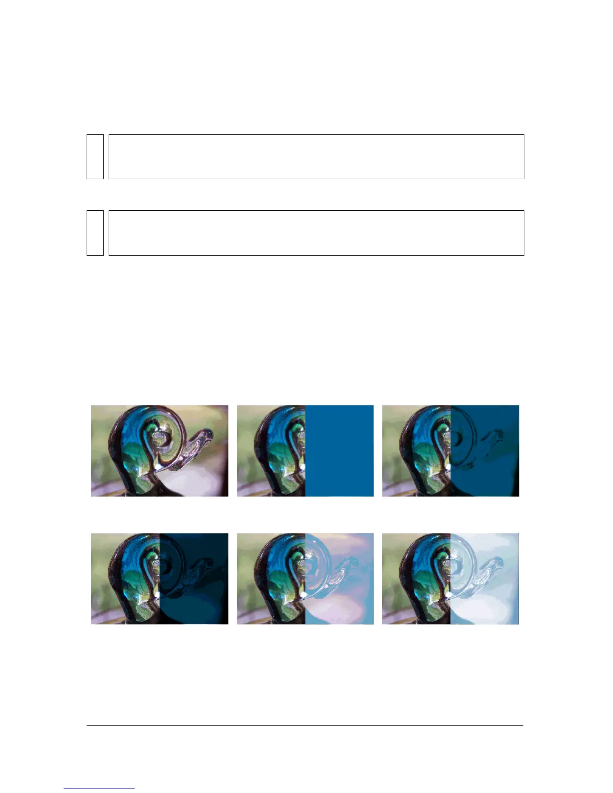 To see examples of the blending modes, see “Blend mode examples” on page 240.