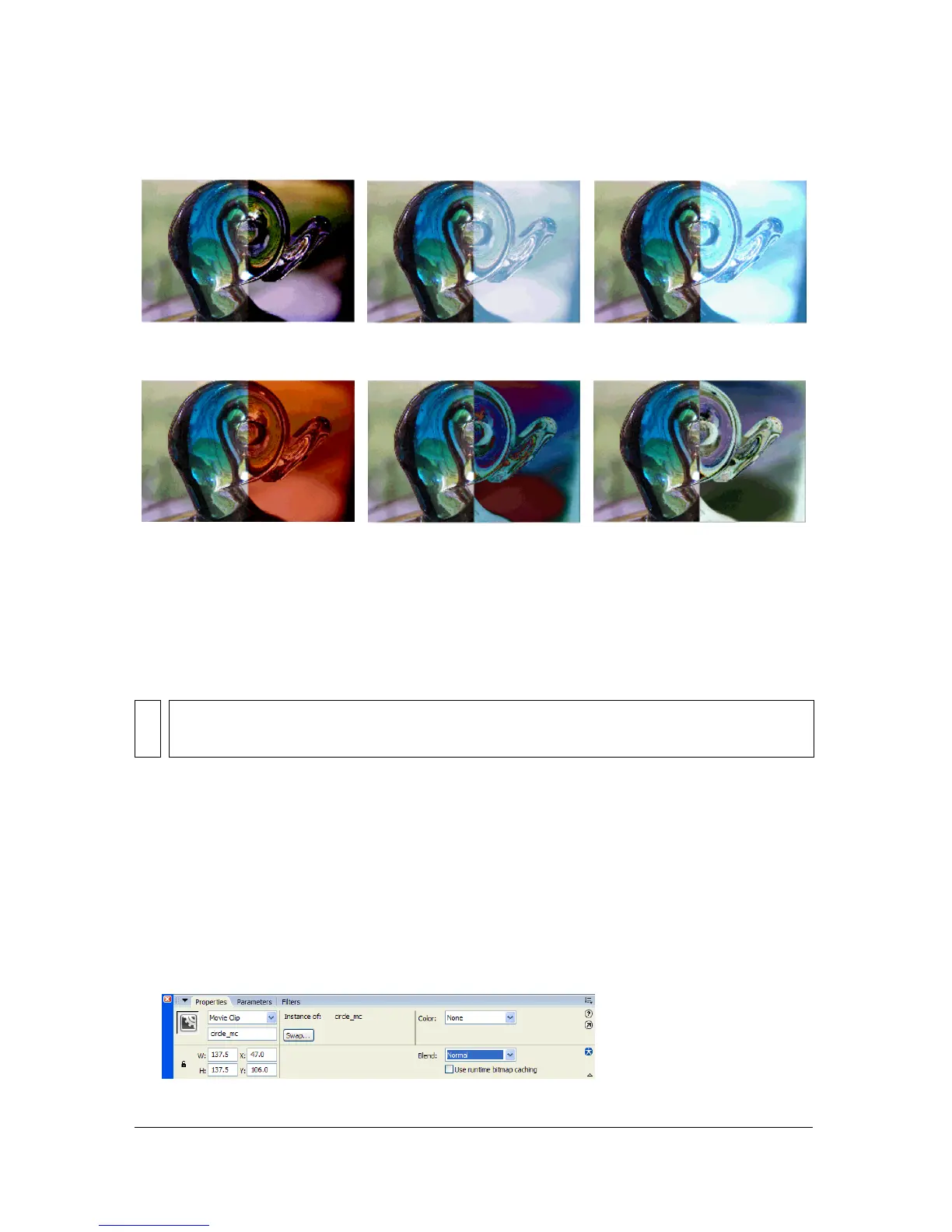 2. Adjust the color and transparency of the movie clip instance using the Color pop-up menu