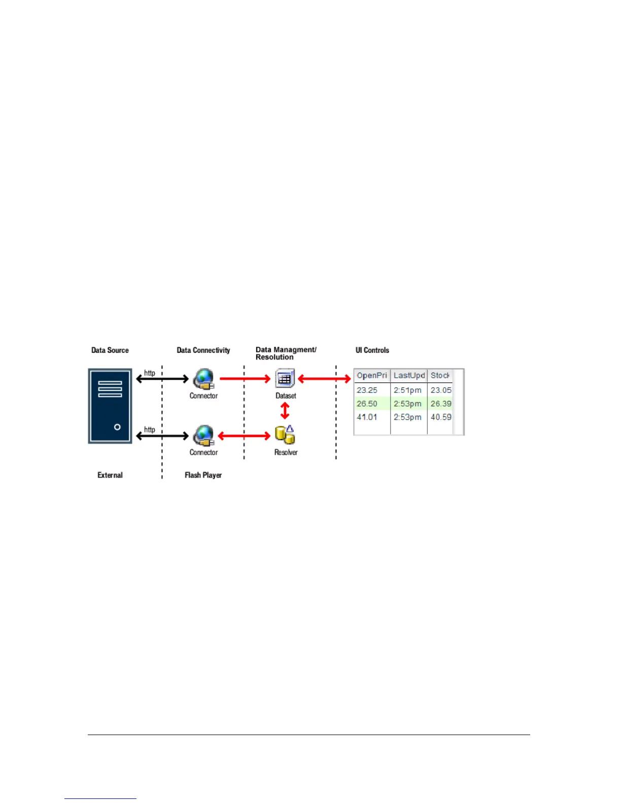 different elements that comprise the Flash data architecture. Data binding is represented by
