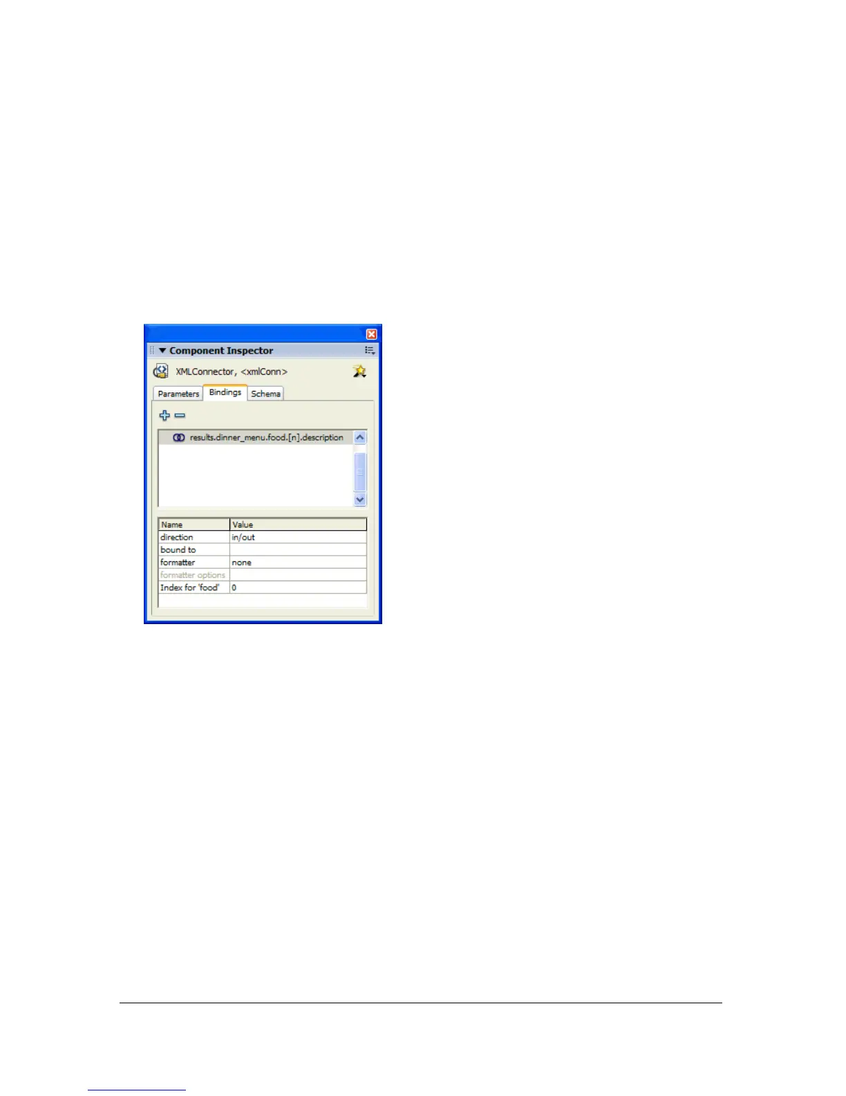 3. Select the xmlConn instance, click the Bindings tab, click the + symbol, and select the