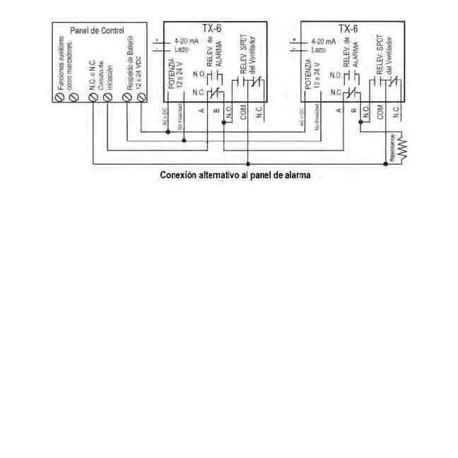 problema. En este modo de error del ventilador * y relevadors de alarma se activará indicando la condición de problema en el panel y
