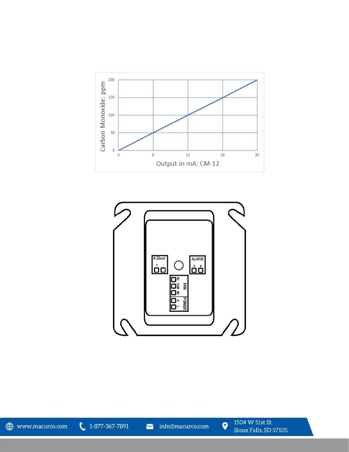7. The Current Loop is 4 mA in clean air and 4-20 mA for 0-200ppm CO.