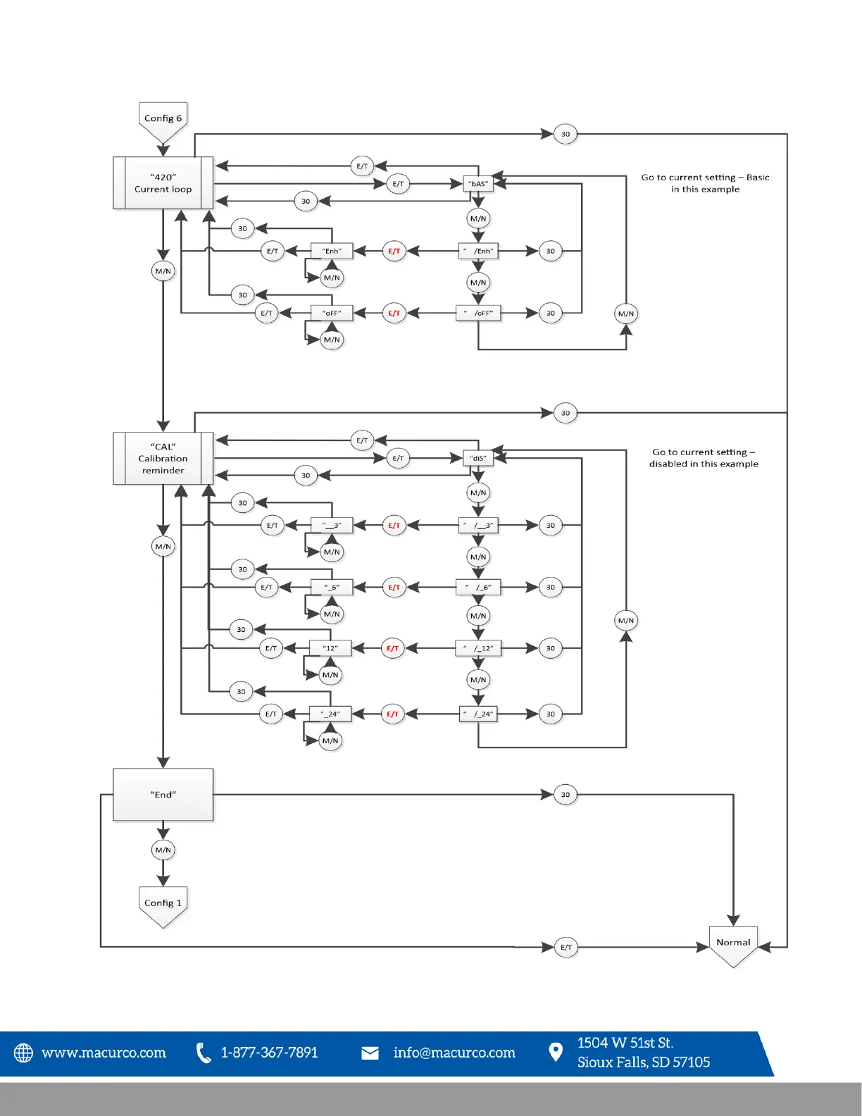 Macurco CM-6 - 4-20 mA Output Setting Flow; Calibration Reminder Setting Flow