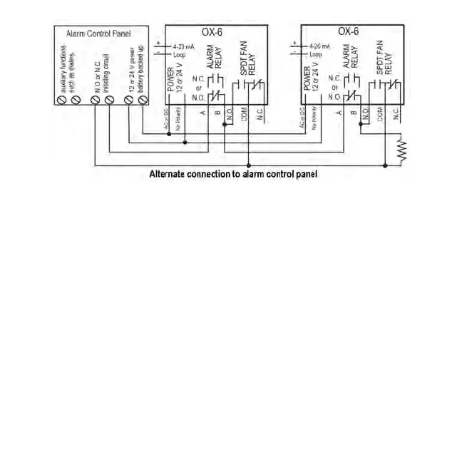 trouble condition. In this error mode the Fan* and Alarm relays will be activated indicating the trouble condition at panel and the OX-6