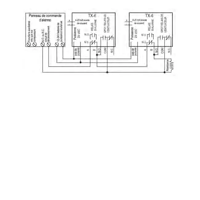 puissance au niveau du détecteur, l'alarme ou relais secondaire utilisé dans la configuration normalement fermée changent d'état
