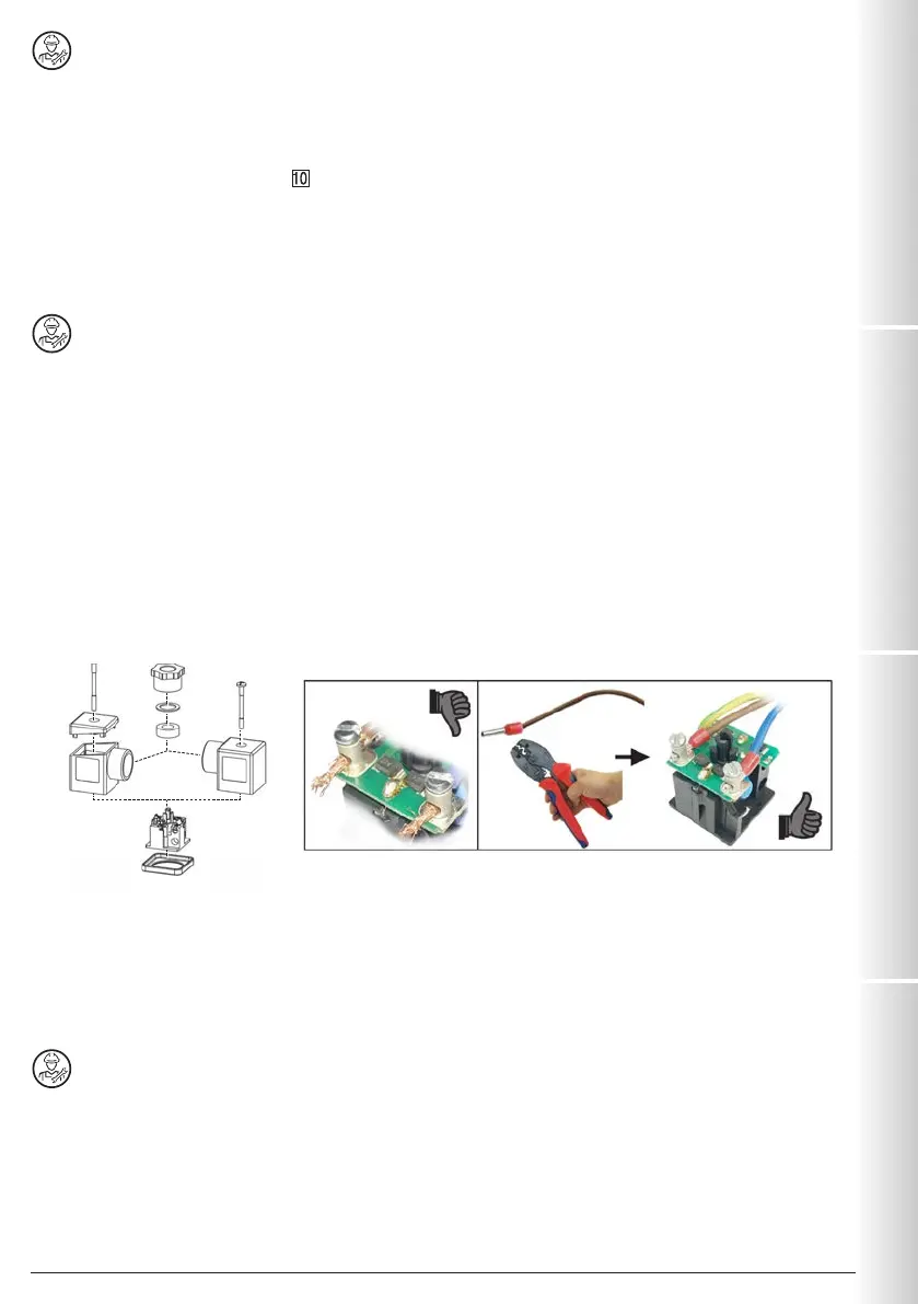 • Wire the terminal board (6) with a cable 3x1 mm², outside Ø between 8.3 and 9.5 mm using the relative terminals for cables,