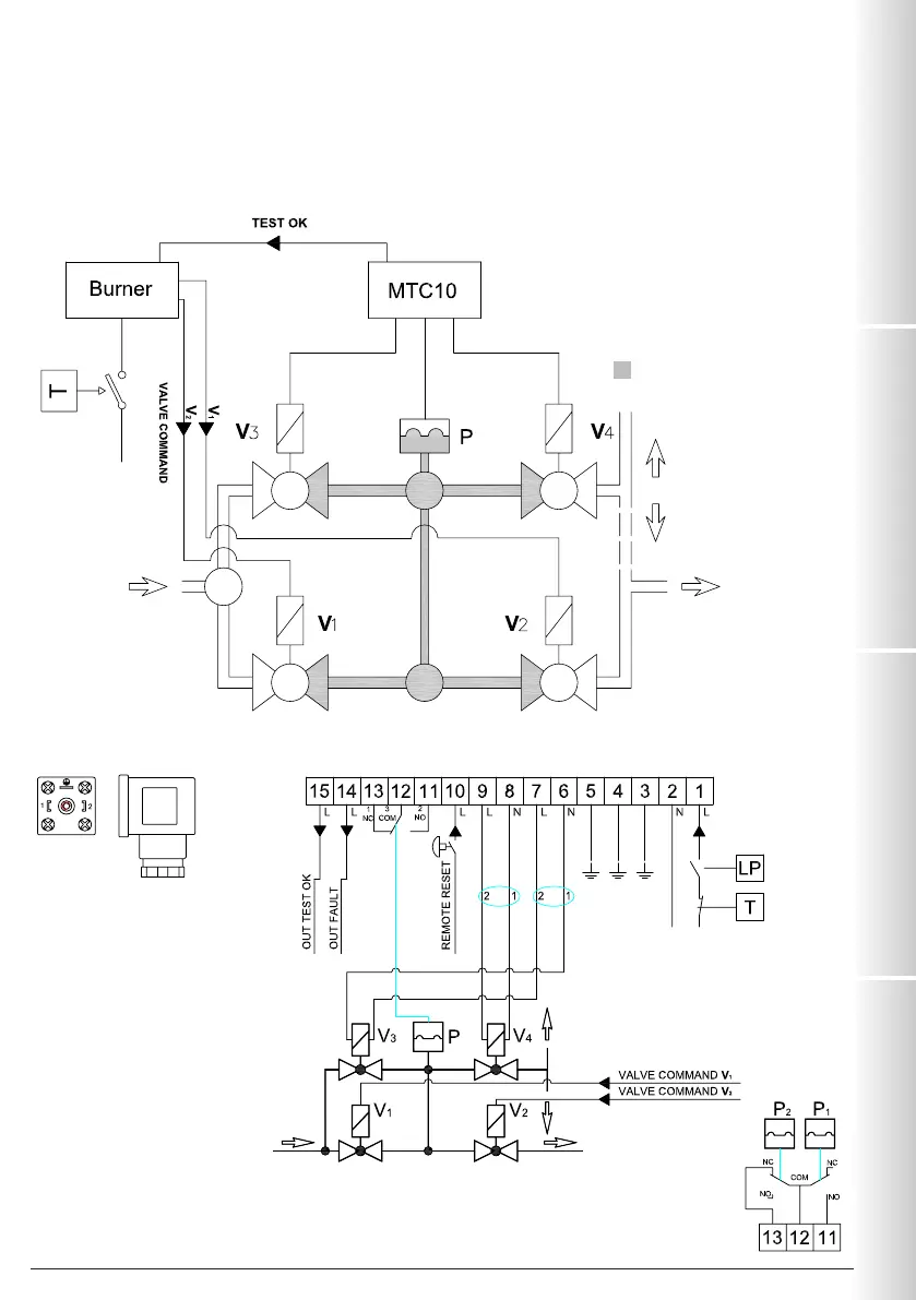La MTC10 controla las válvulas V3 y V4. El Burner Control controla las válvulas V1 y V2.