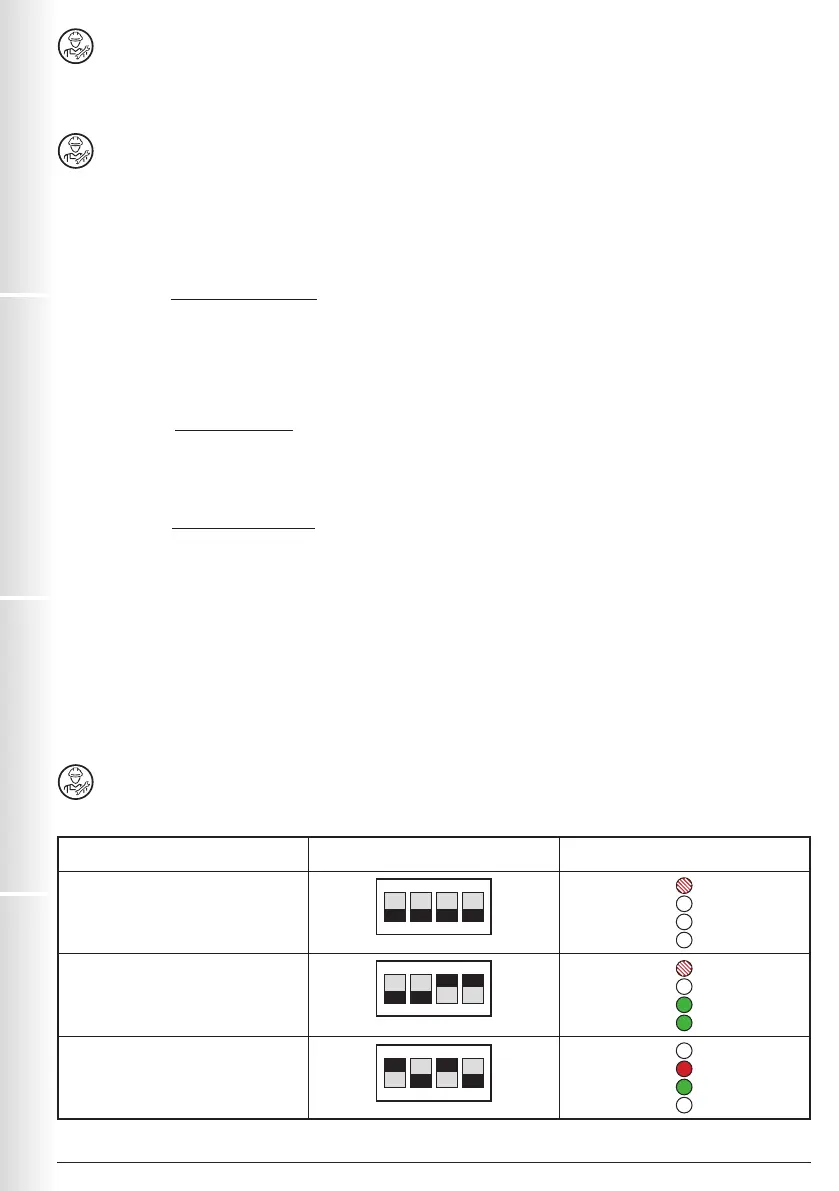 La selezione del tipo di funzionamento viene effettuata attraverso i cursori del deep-switch (3) presente a lato della morsettiera.