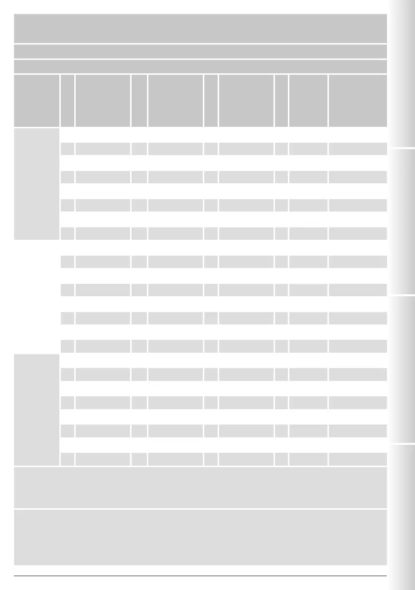 * = versions with reinforced diaphragm. Settings marked with * are not interchangeable with standard settings (the one without *).