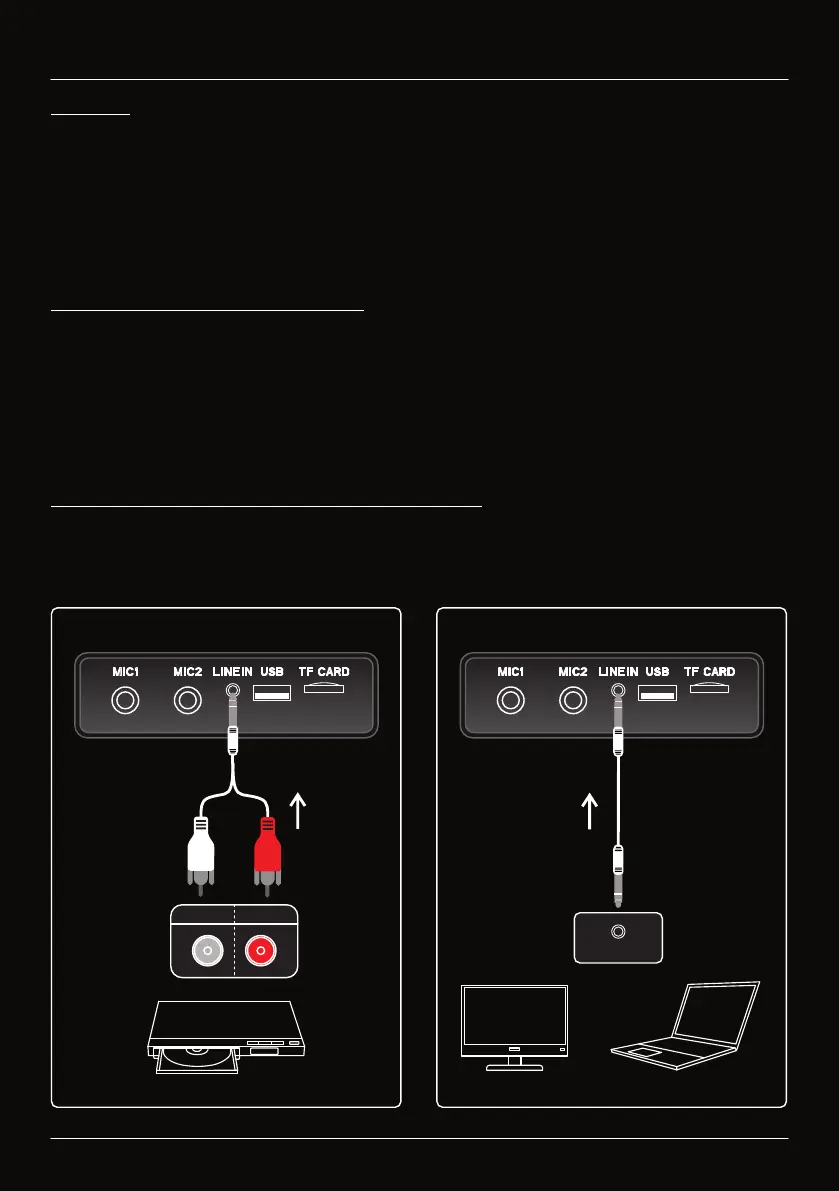 RCA-ulostulot, käytä 3,5 mm stereo plugi - RCA-kaapelia. Vaihtoehtoisesti mikäli