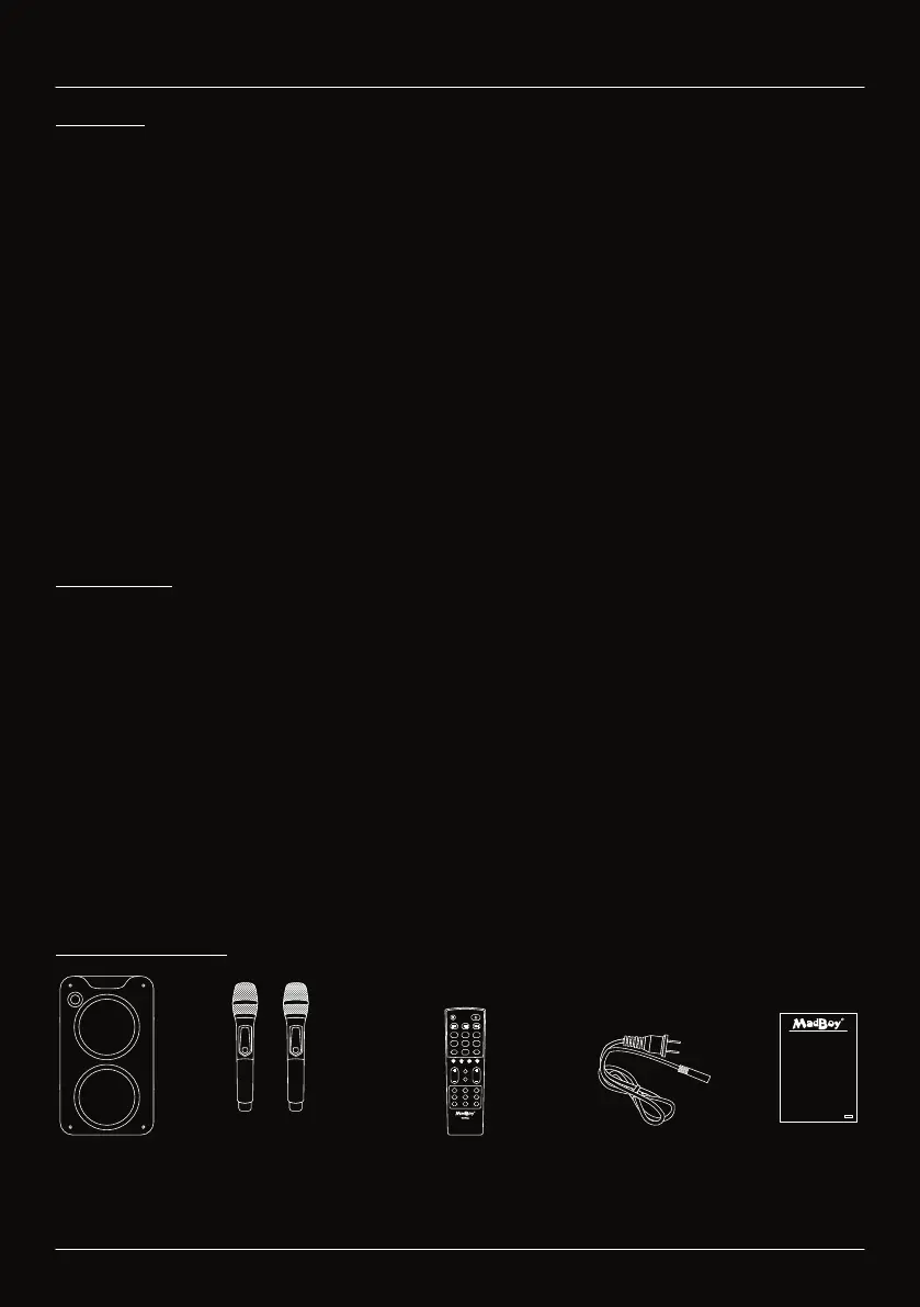 Ÿ Battery-powered karaoke system with two wireless microphones