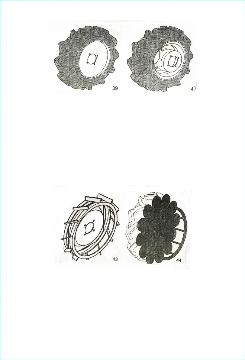 The wheels 3.50-8 and 4.00-8 (fig 39) do not have the rim with adjustable track. However it is possible to