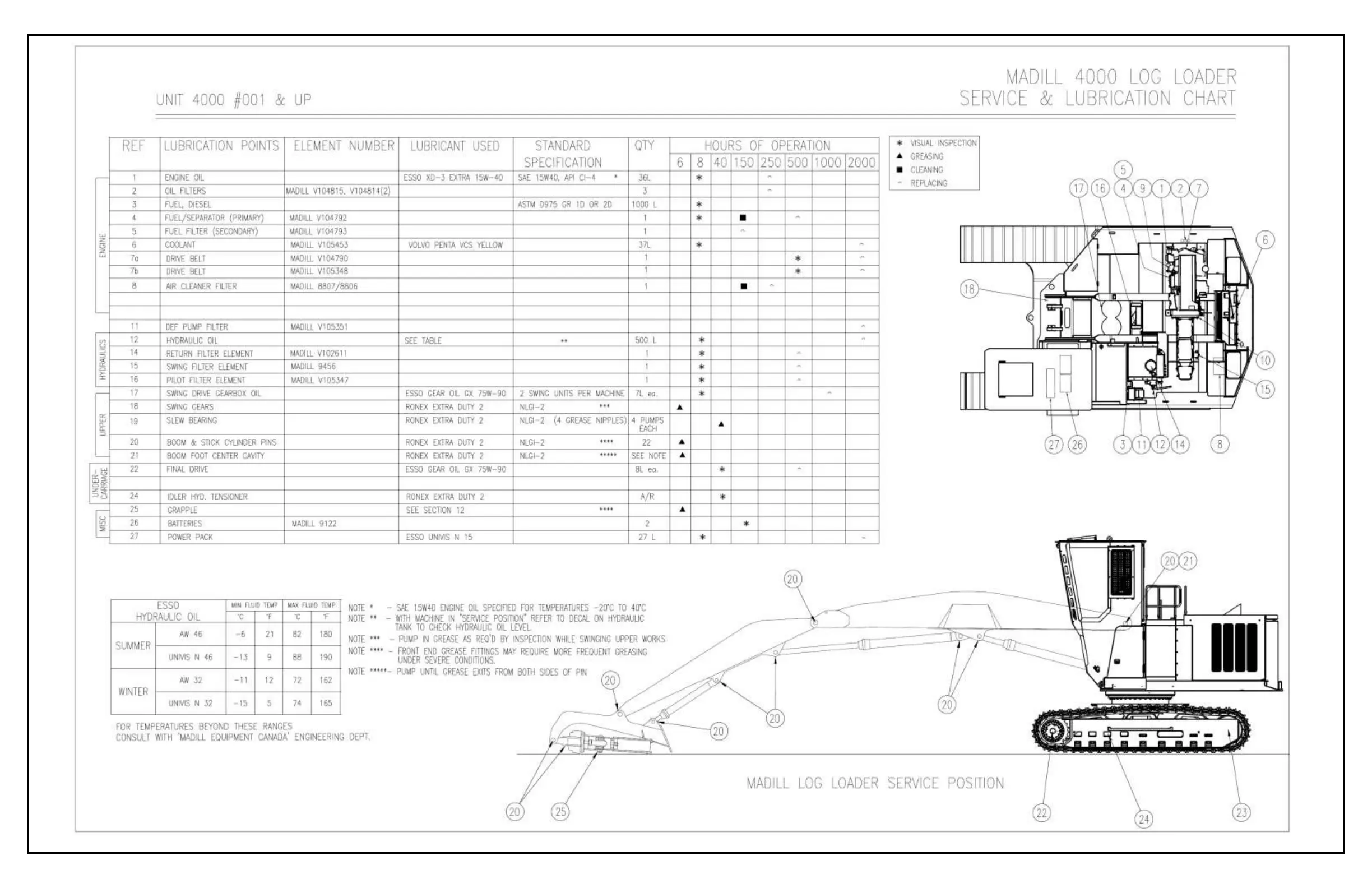 Madill 3000 - 4000 Log Loader Service & Lubrication Chart