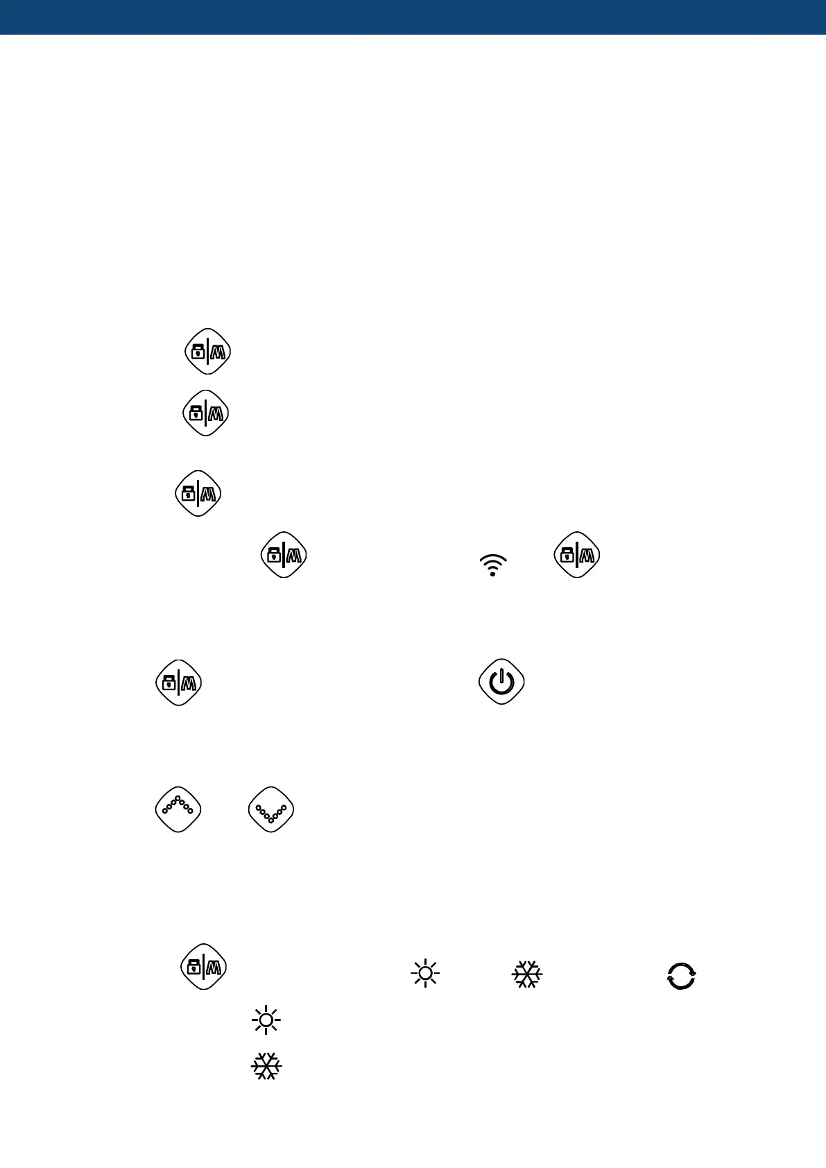 Press “ ” to switch among heating” ”, cooling” ” and auto mode” ”.