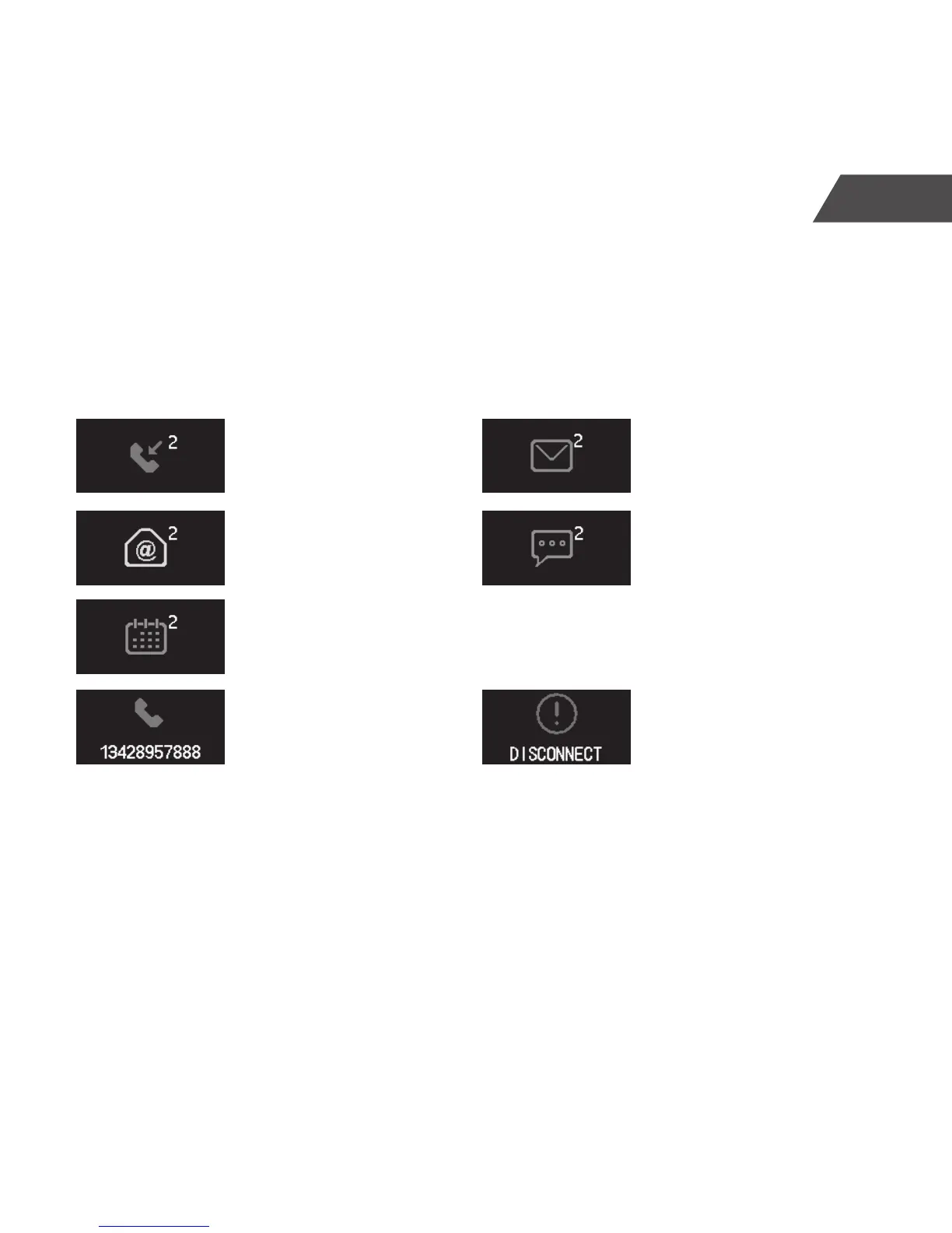 Use the mobile app to set CALLS, MISSED CALLS, SMS, E-MAIL, SOCIAL