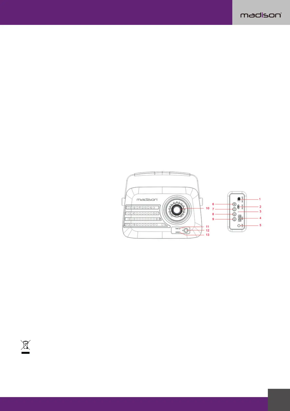 redarea și întrerupeți muzica, butonul (9) pentru a comuta la melodia următoare.