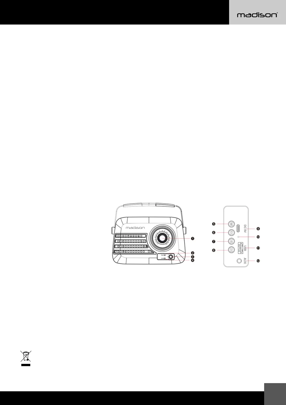 odtwarza utwory z USB. Użyj przycisku (6), aby przejść do poprzedniego utworu, przycisku (7) do sterowania