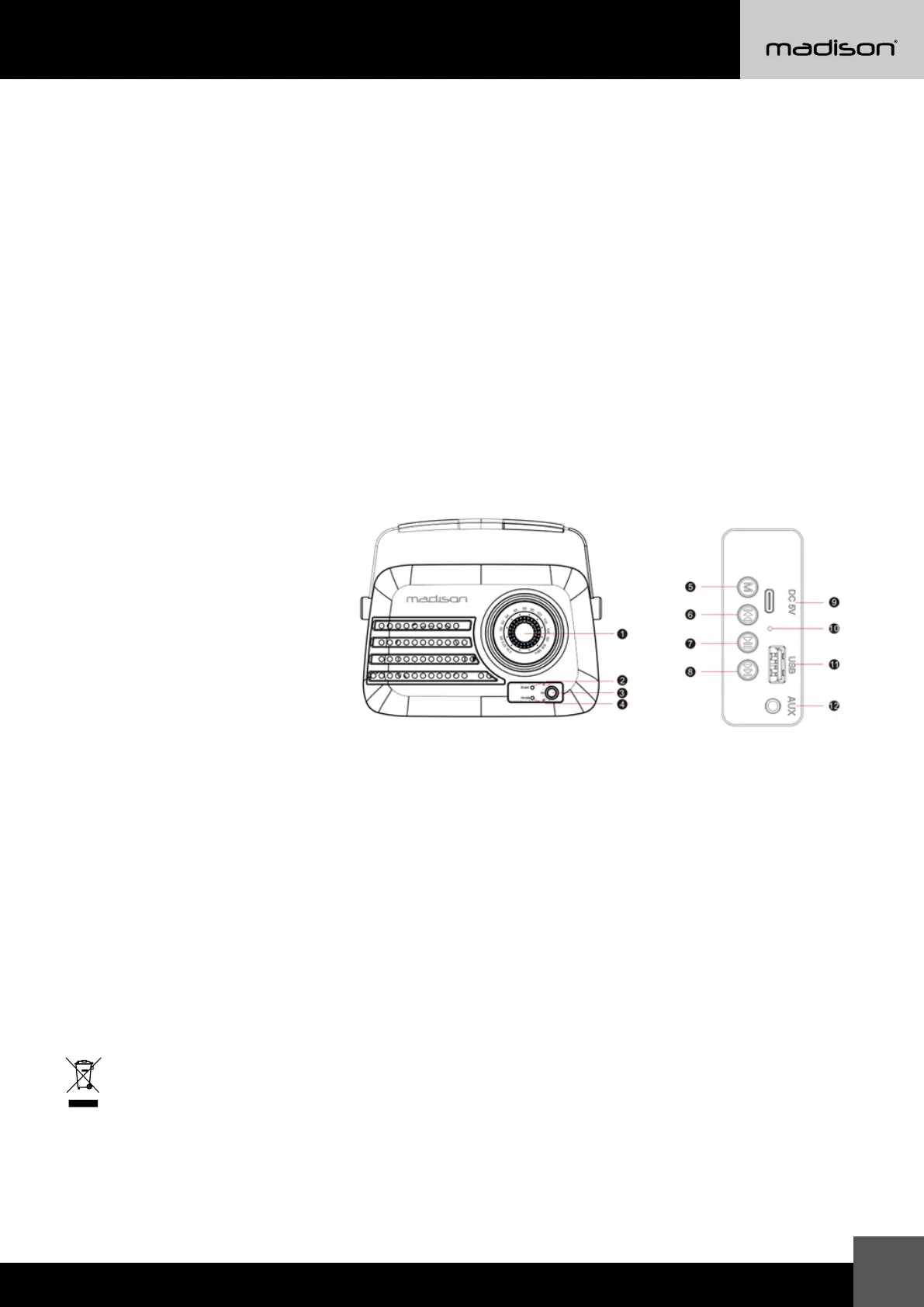 Sätt i en USB-enhet i USB-porten (11) för att spela musik som är lagrad på enheten. Radion spelar automatiskt