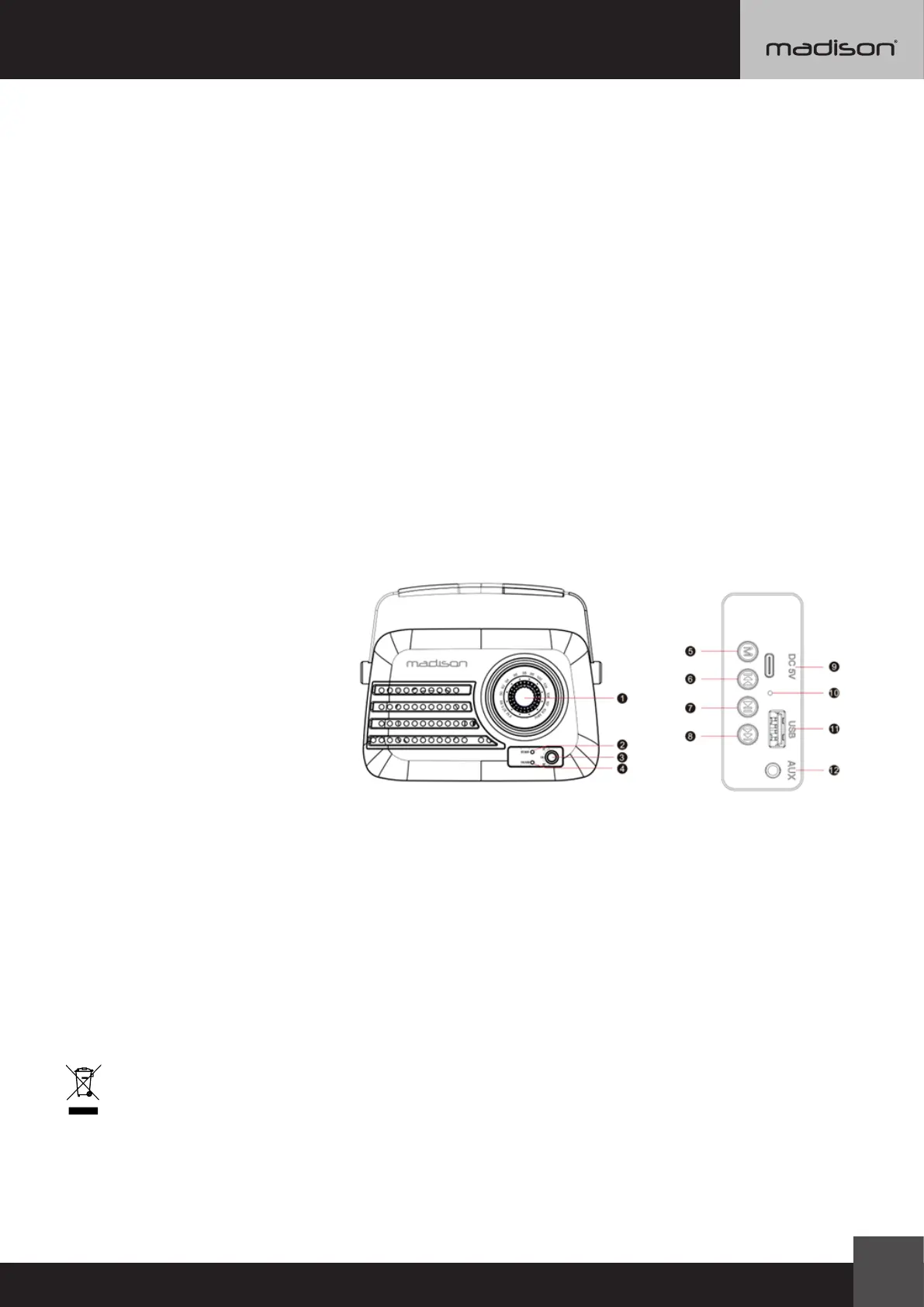 from the USB. Use button (6) to switch to previous song, button (7) to control play and pause the music, button