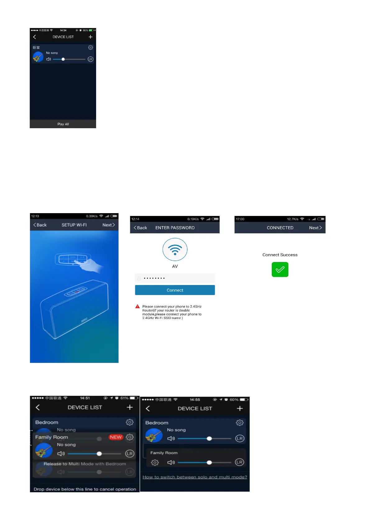 pe aplicație și introduceți parola routerului. Așteptați câteva minute și difuzorul WIFI va fi adăugat la aceeași