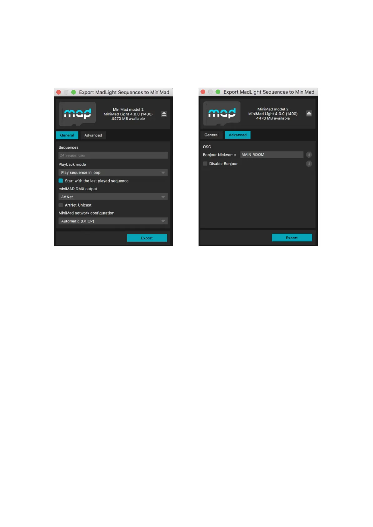 completely to prevent the miniMAD from appearing in applications supporting Bonjour.