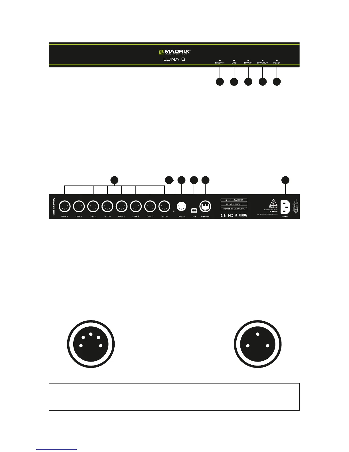 LUNA verfügt über 5-polige, weibliche XLR-Buchsen