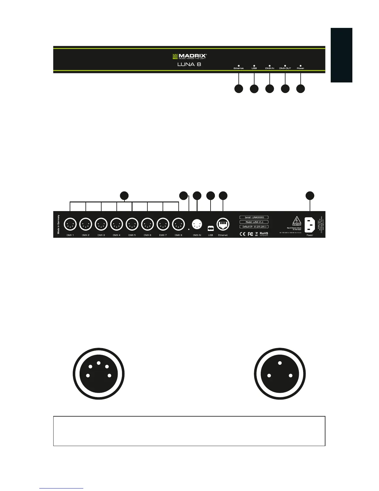 6) XLR ports: DMX 1 – DMX 4/8/16