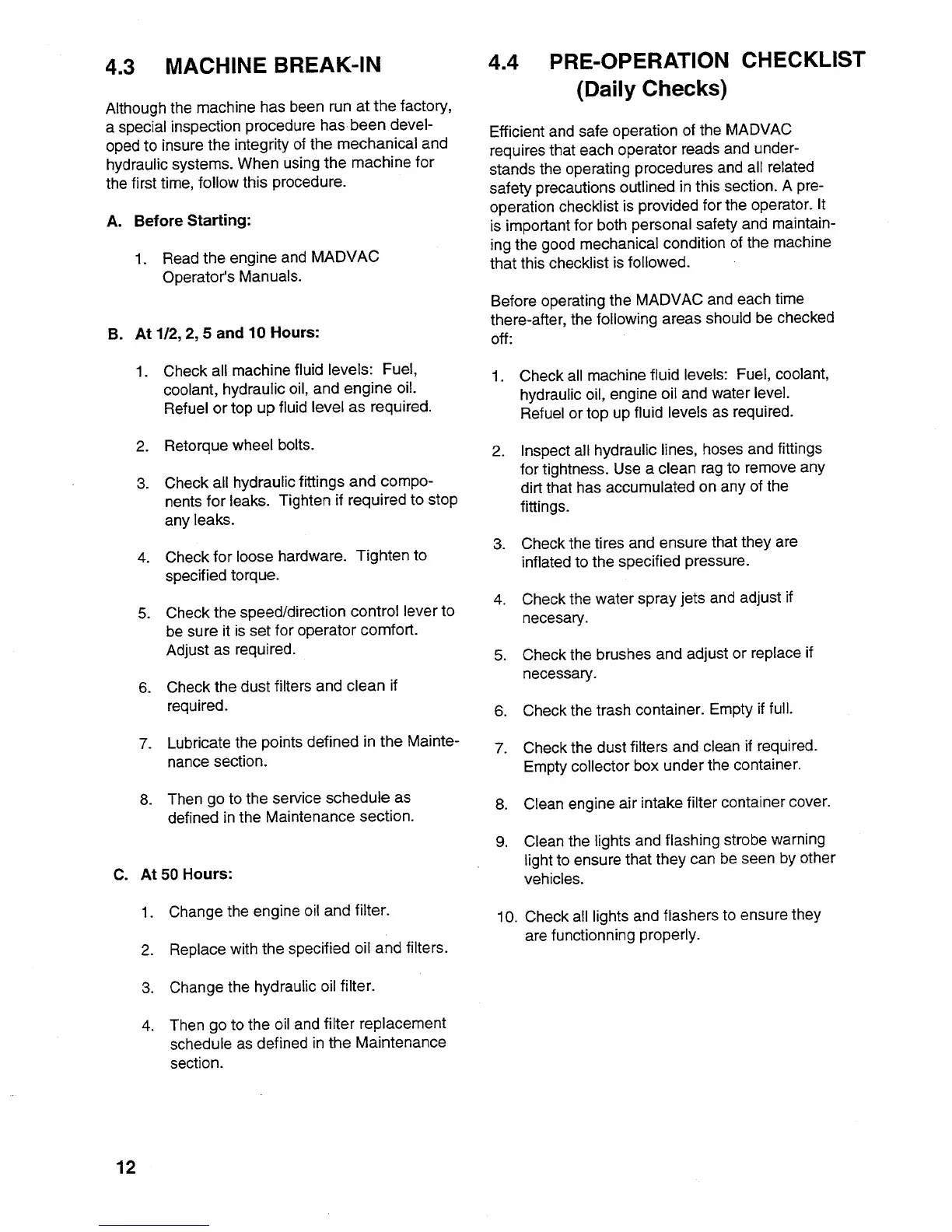 MADVAC PS300 - PRE-OPERATION CHECKLIST
