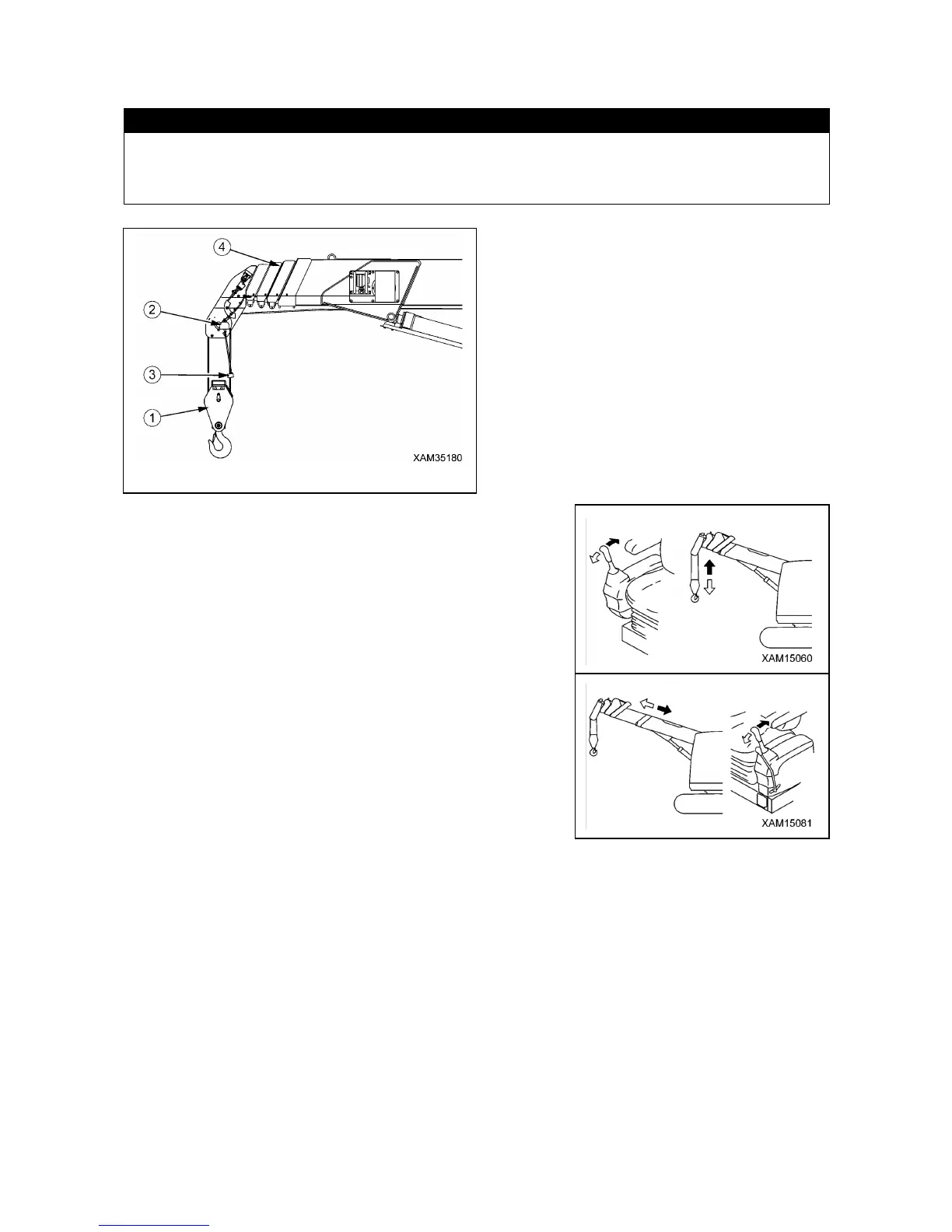When raising the hook block, be careful of clearance between the hook block and boom.
