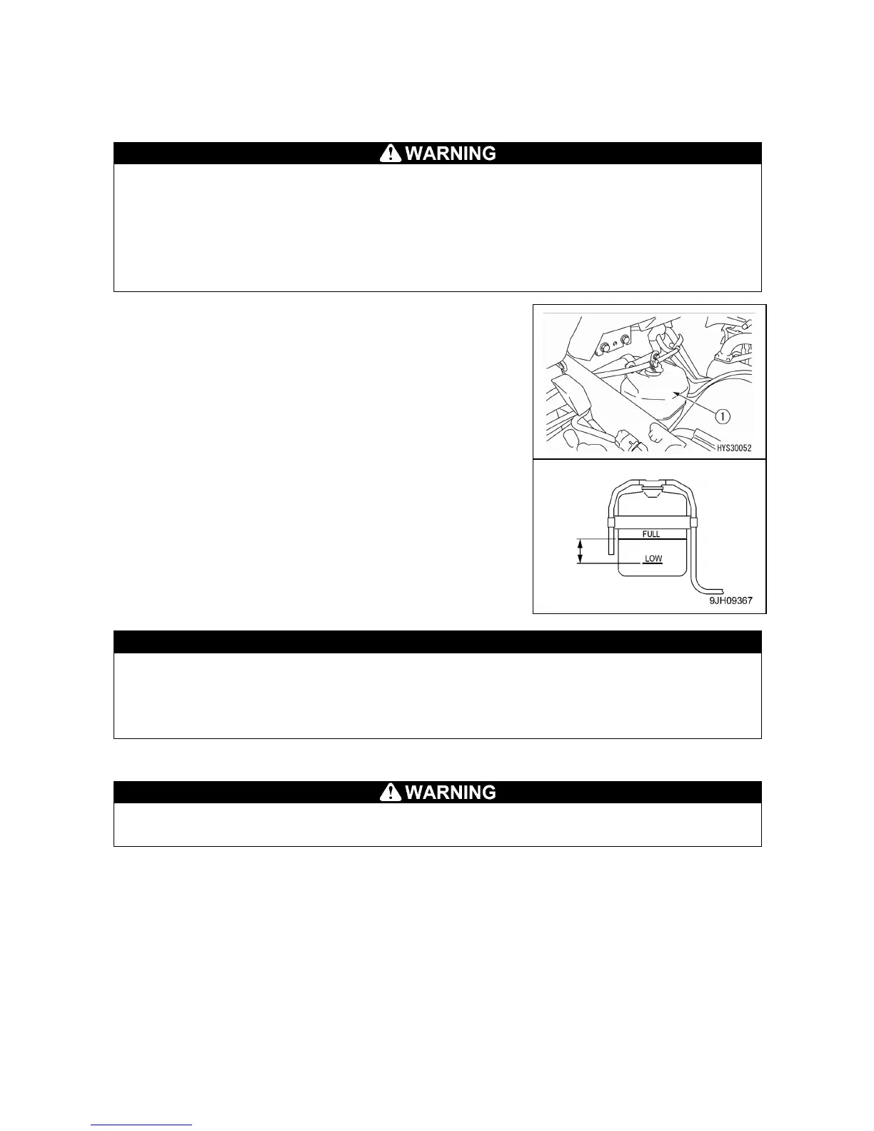 • The coolant is at elevated temperature after the engine is stopped. Besides, pressure is