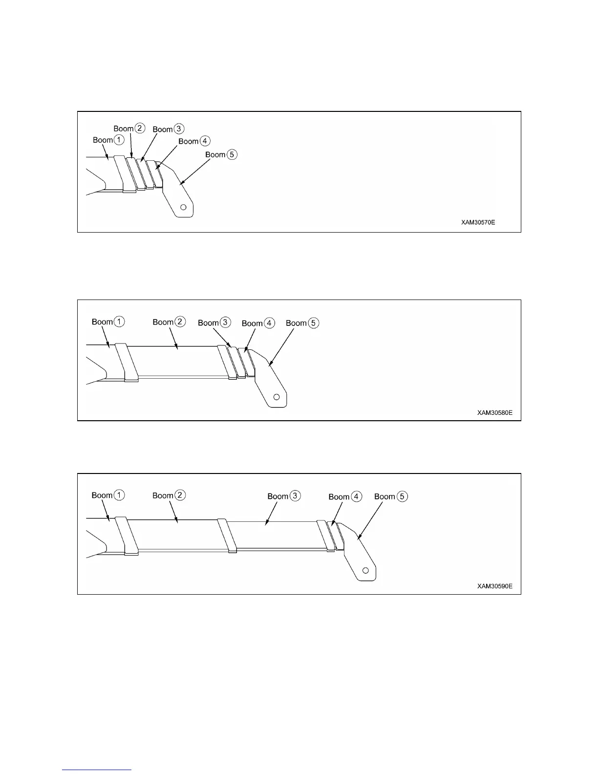 2. "7.625 m boom (2)": Booms (3), (4) and (5) are retracted, while boom (2) alone is fully