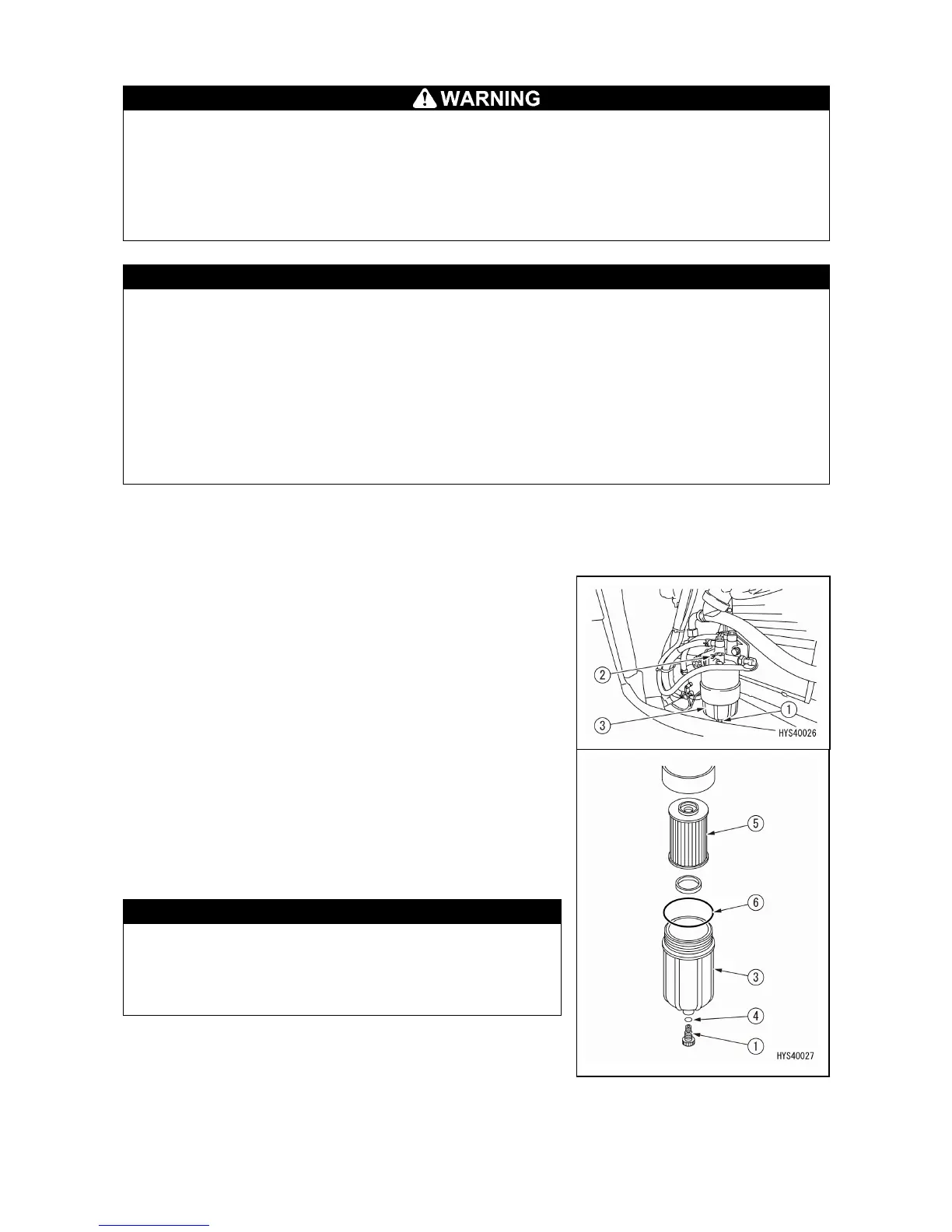 • Be extremely careful of fire such as cigarettes when replacing the fuel filter elements.
