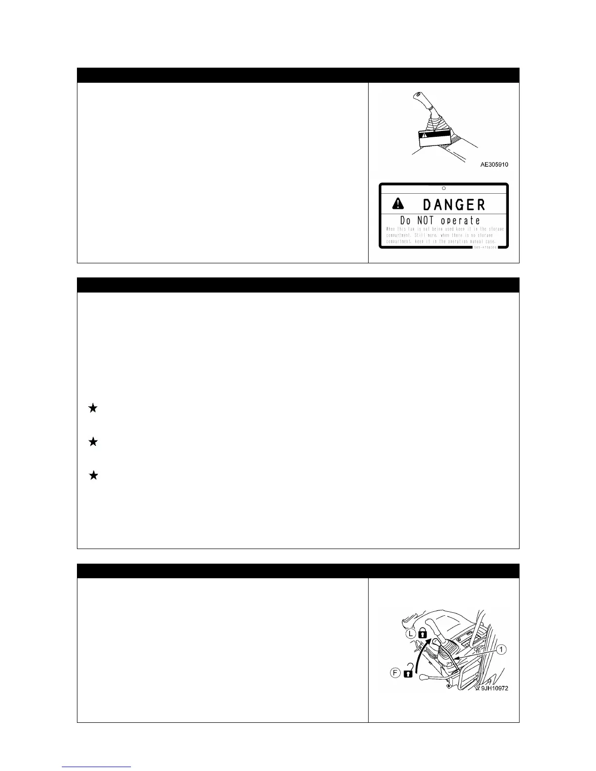• Do not allow anyone other than the operator to get on the