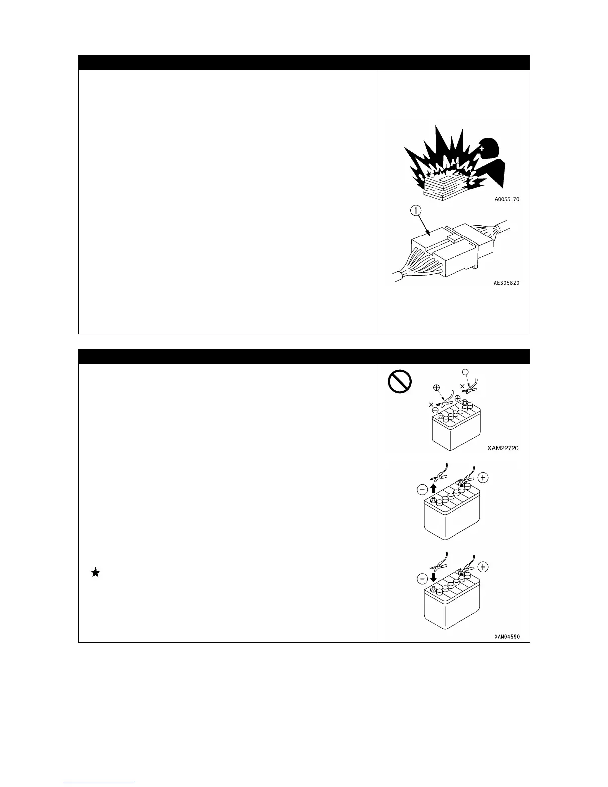 • Do not connect to wrong side [connecting (+) to (-), (-) to (+)]