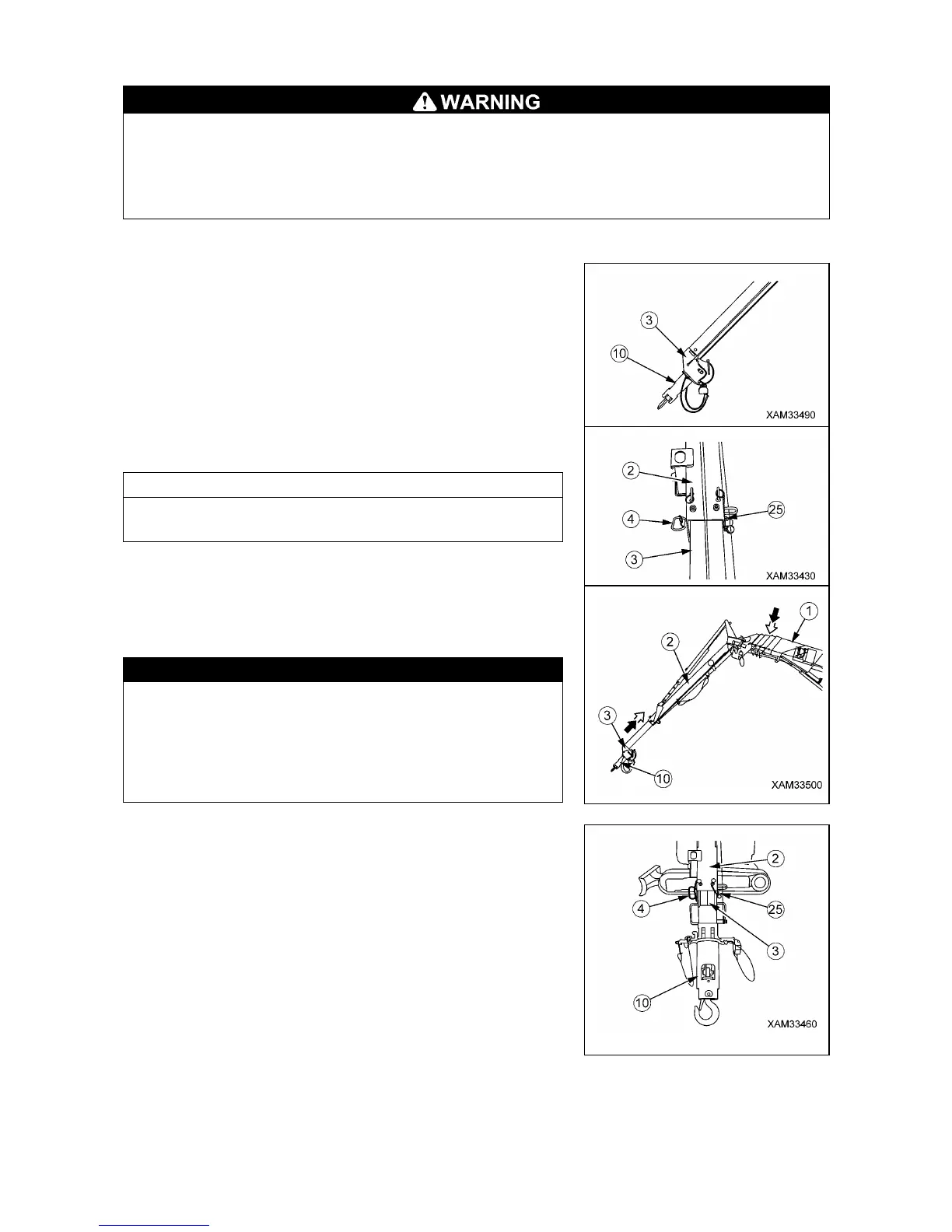 In such an event, lower the boom or take hold of handles