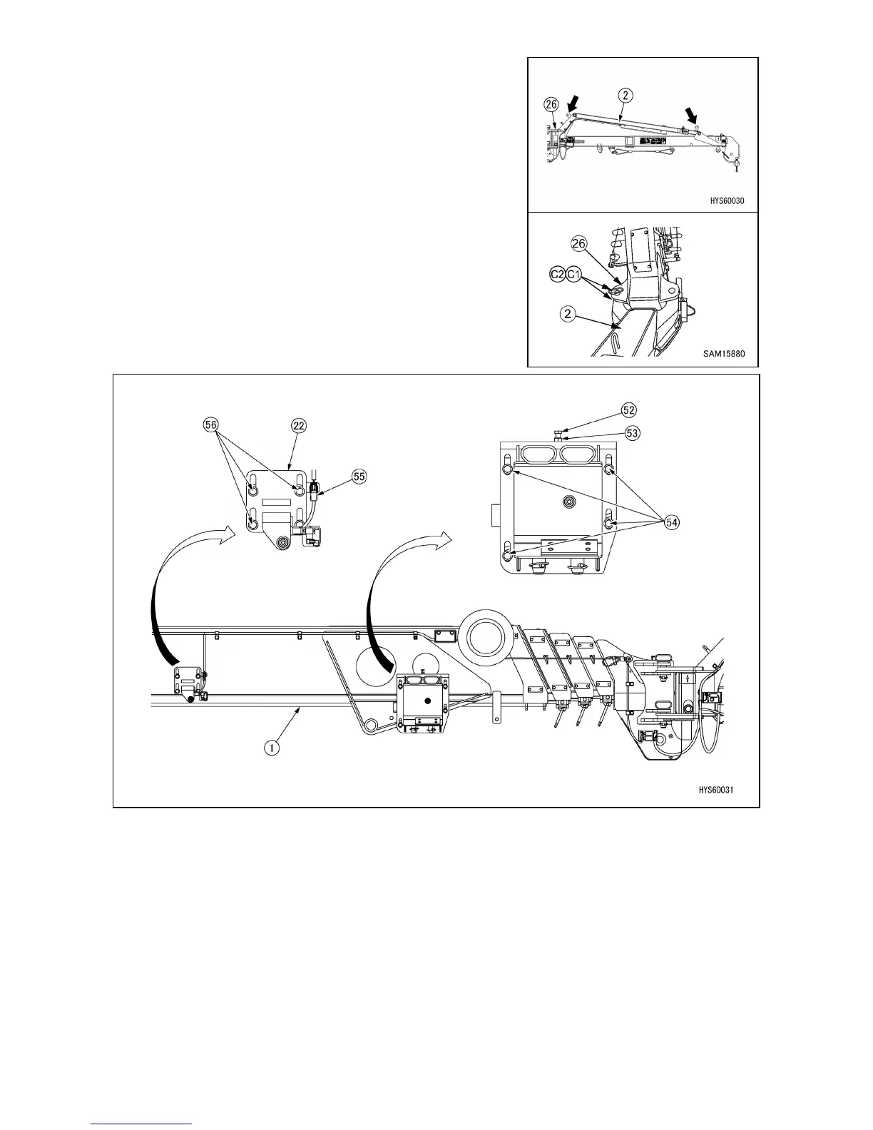 14. Disconnect the wiring connector (55) of the Fly-jib stowage detection limit switch at the side of the