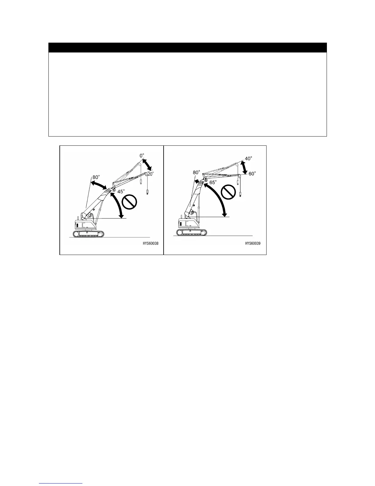 • When the Fly-jib tilt angle is set to 40 or 60 degrees, load hoisting operation is not available