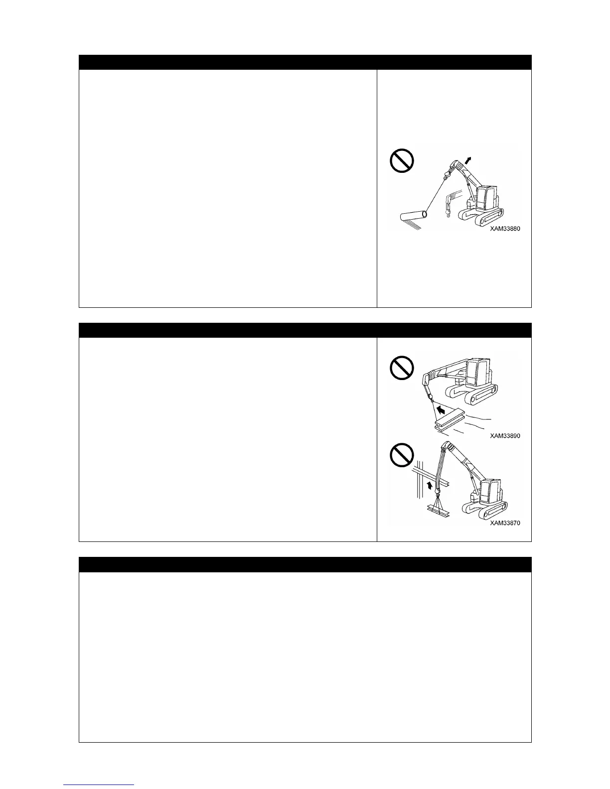 stand up by slewing operation are strictly prohibited. Do not