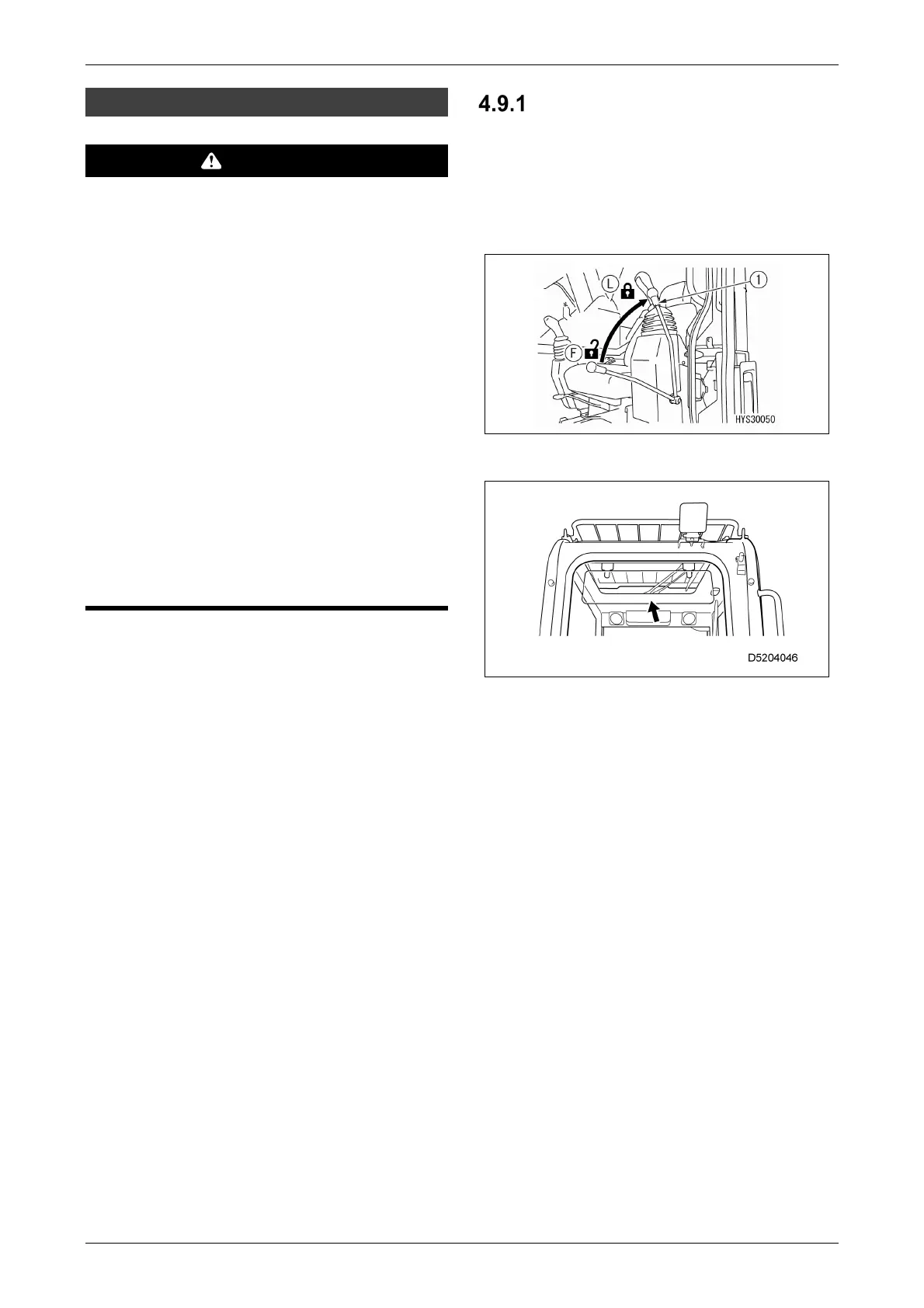 • When standing up from the operator's seat,
