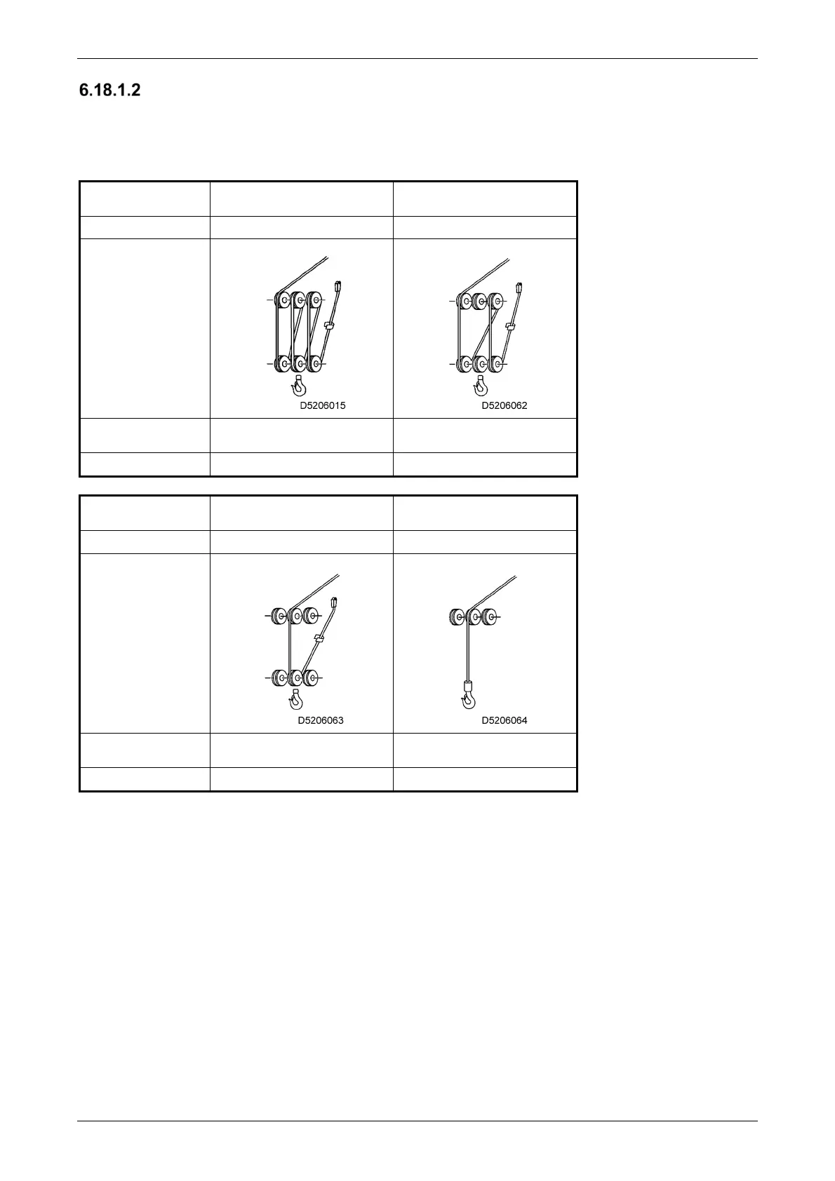 The table below shows the type of hook block, number of falls of wire rope, and the corresponding