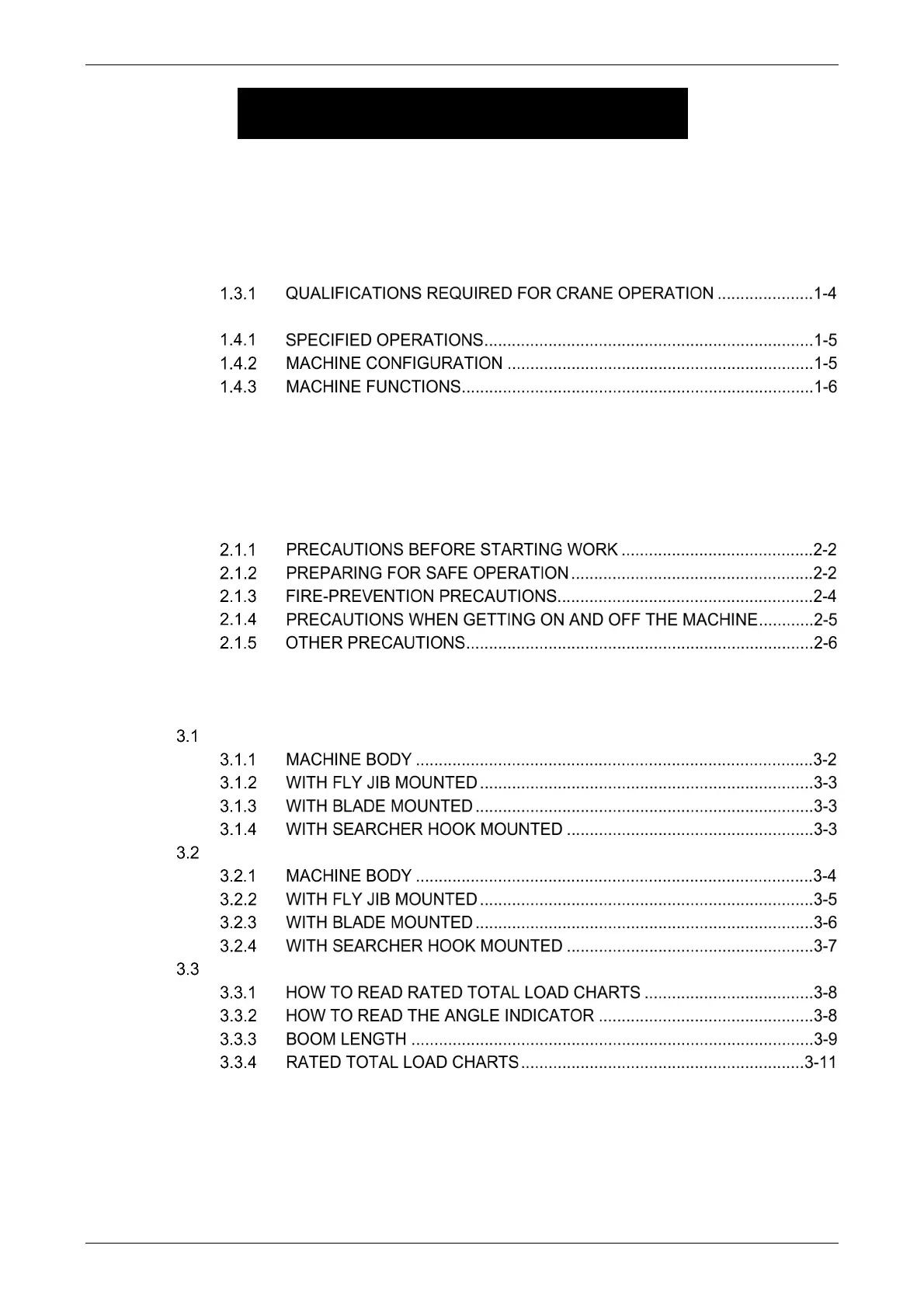 RATED TOTAL LOAD CHARTS .............................................................................. 3-8