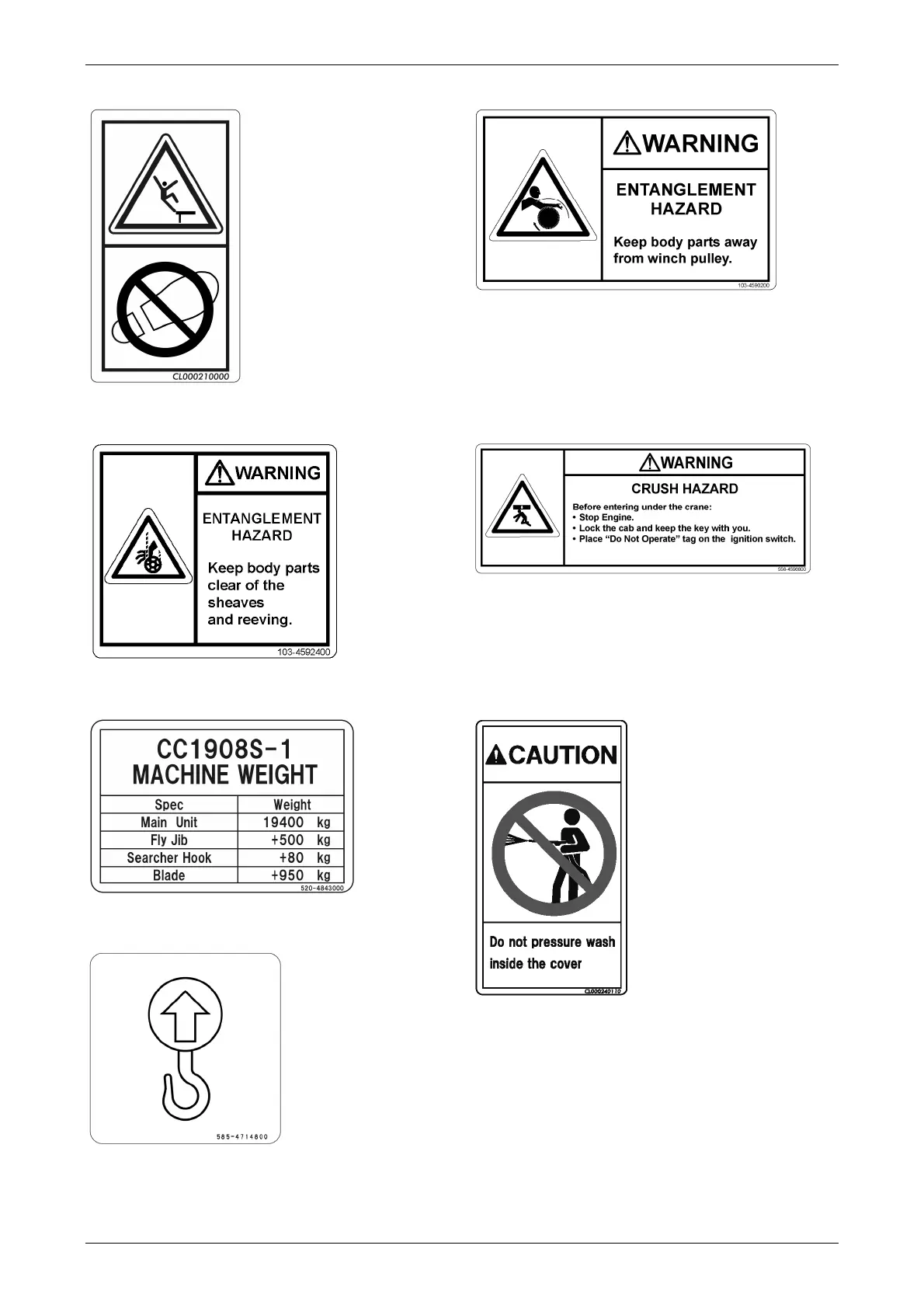 [20] 103-4592400 Get caught in hook [21] 556-4596800 Crush hazard
