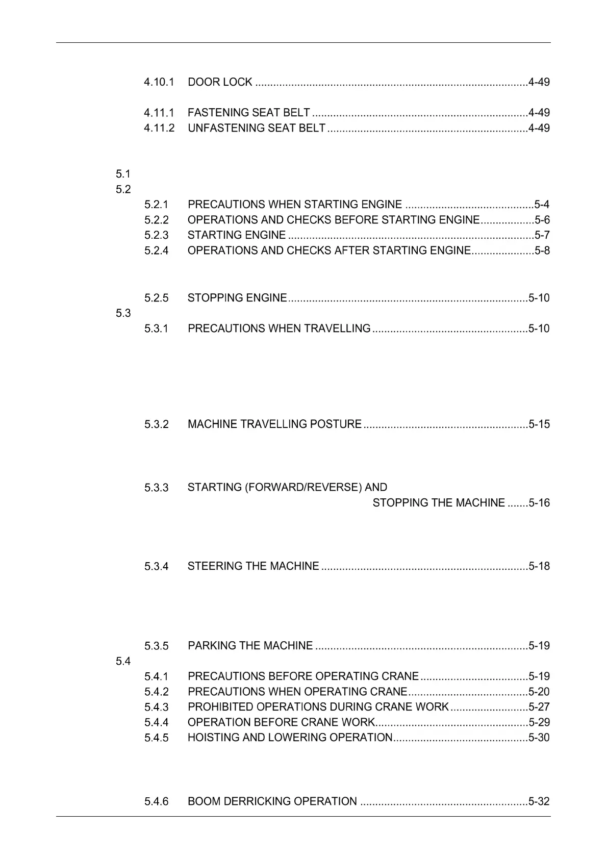 5.3.1.2 HIGH-SPEED TRAVELLING PRECAUTIONS ....................... 5-11