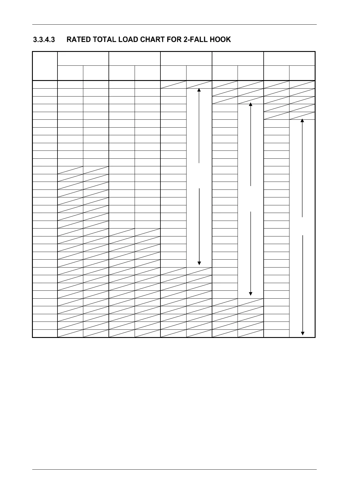 • The rated total load chart indicates the load including the mass of hoisting accessories (hook mass: 90