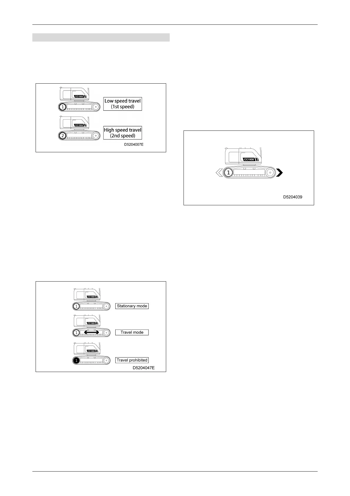 • When the travel 1st speed/2nd speed