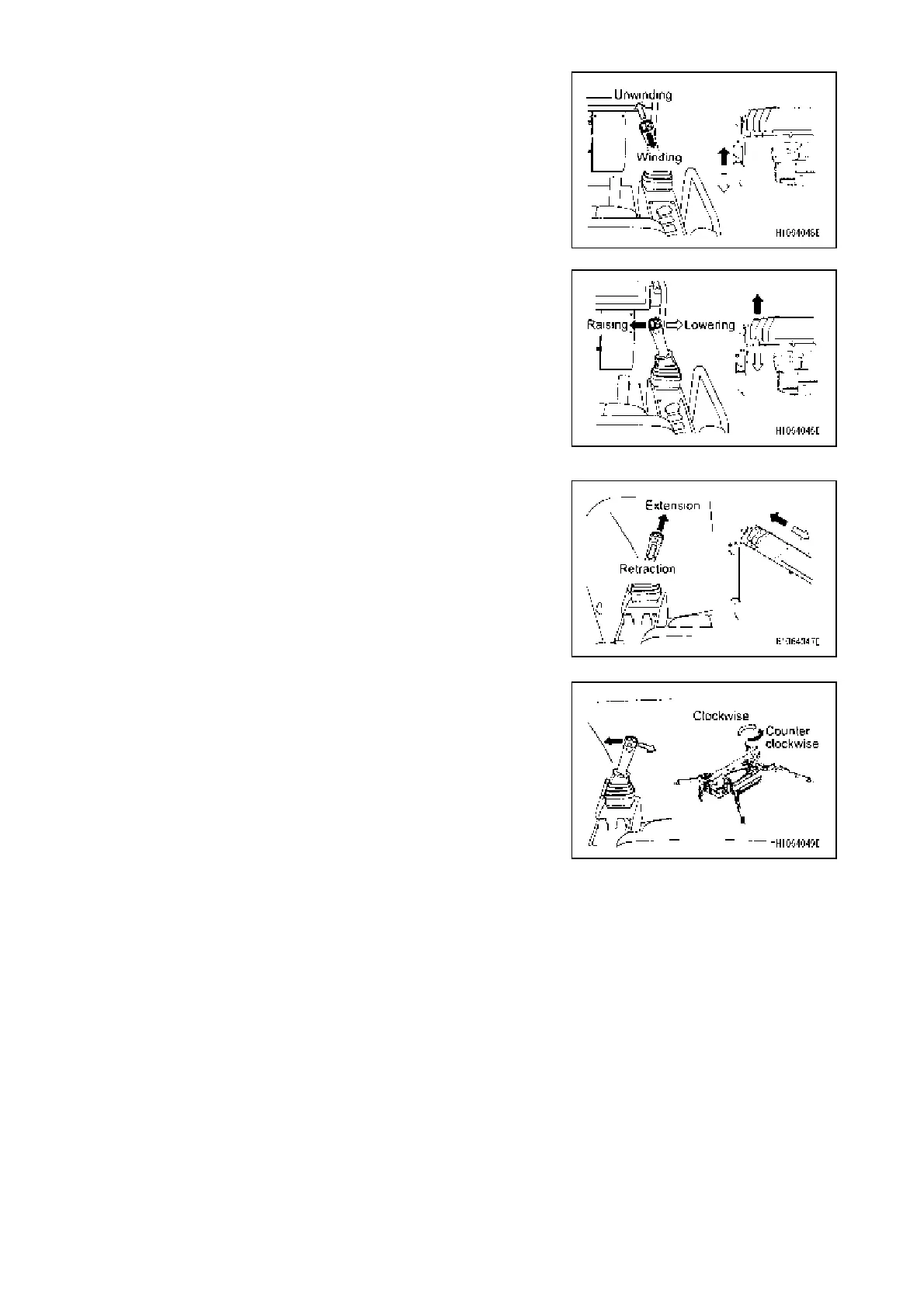Slews the boom in the clockwise direction while the lever is
