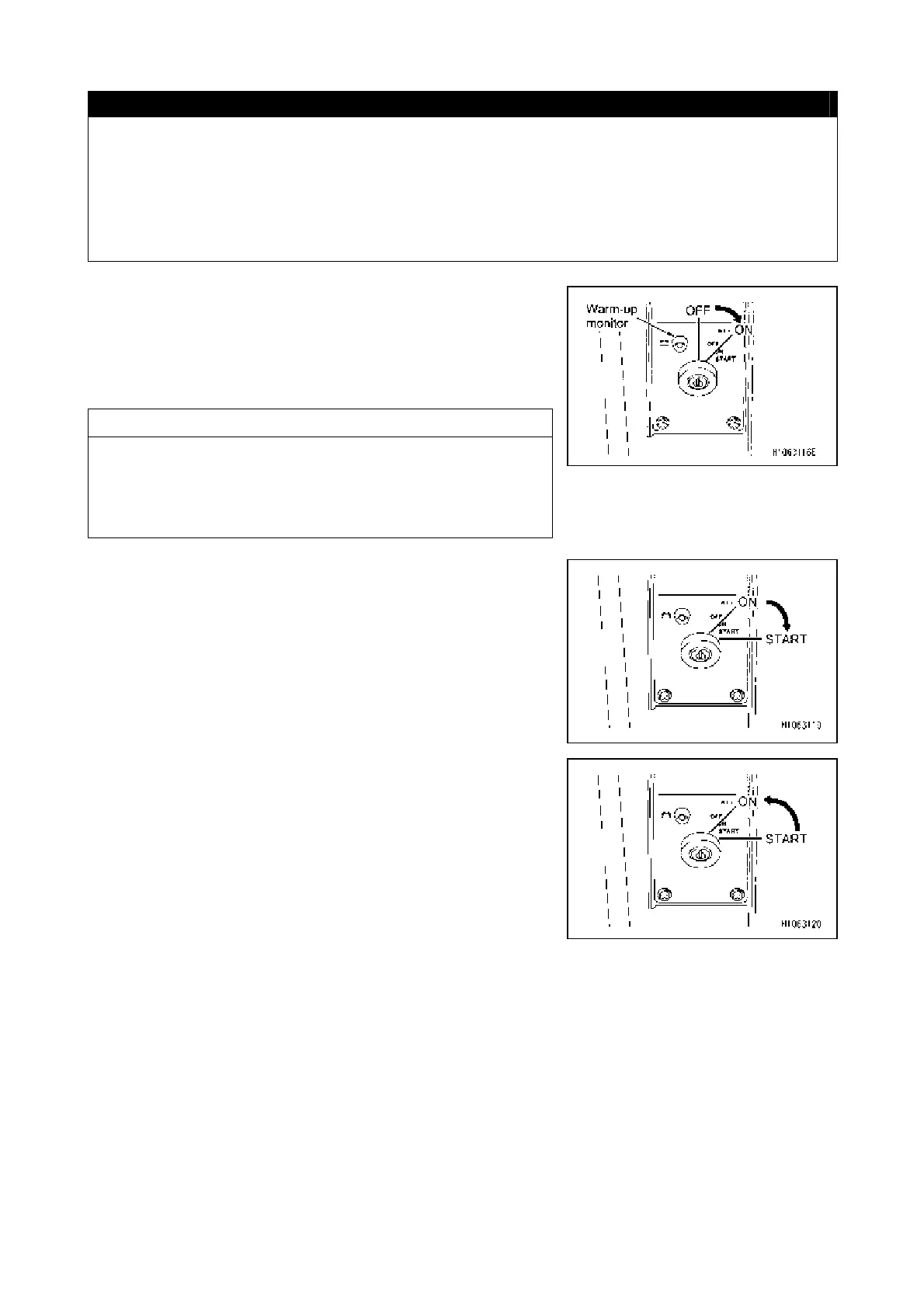 • Do not keep the starter turned for more than 5 seconds. Doing so will accelerate