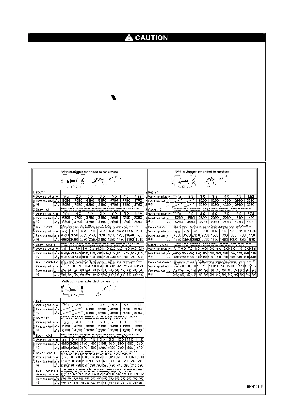 • Rated total load chart is based on that the crane is placed leveled and on firm ground.
