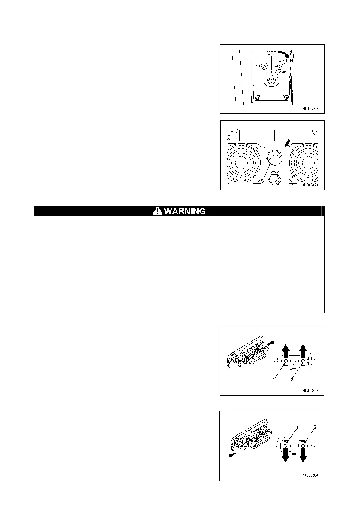 • To start the machine, control the engine at low speeds, manipulate the left and right