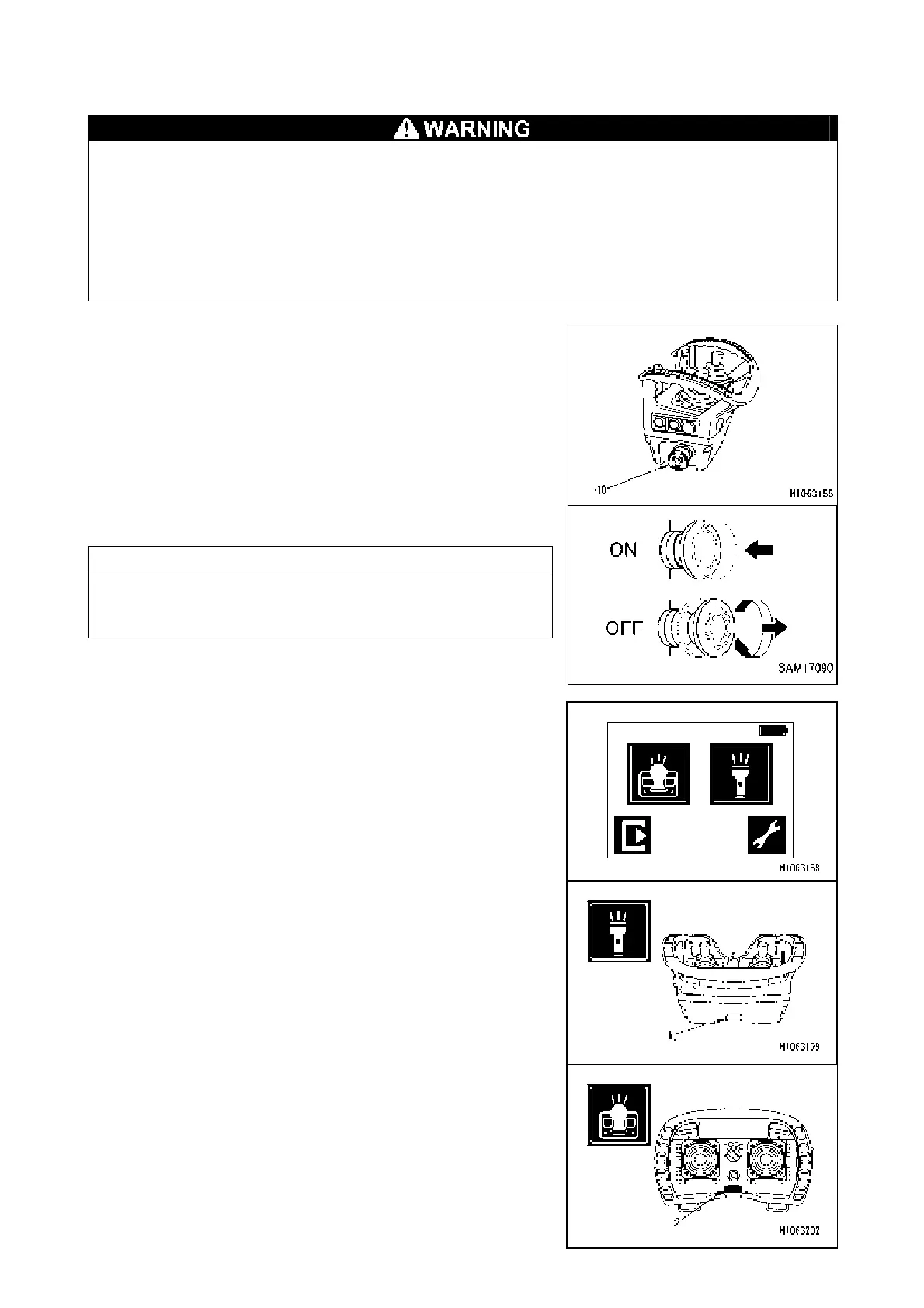 stop/Remote controller power OFF switch (10) to stop the engine. The abnormality